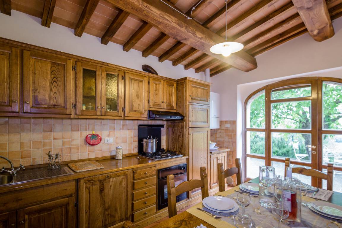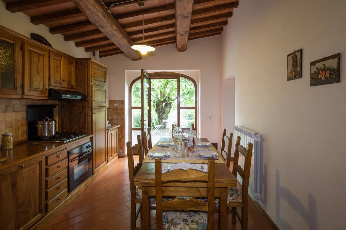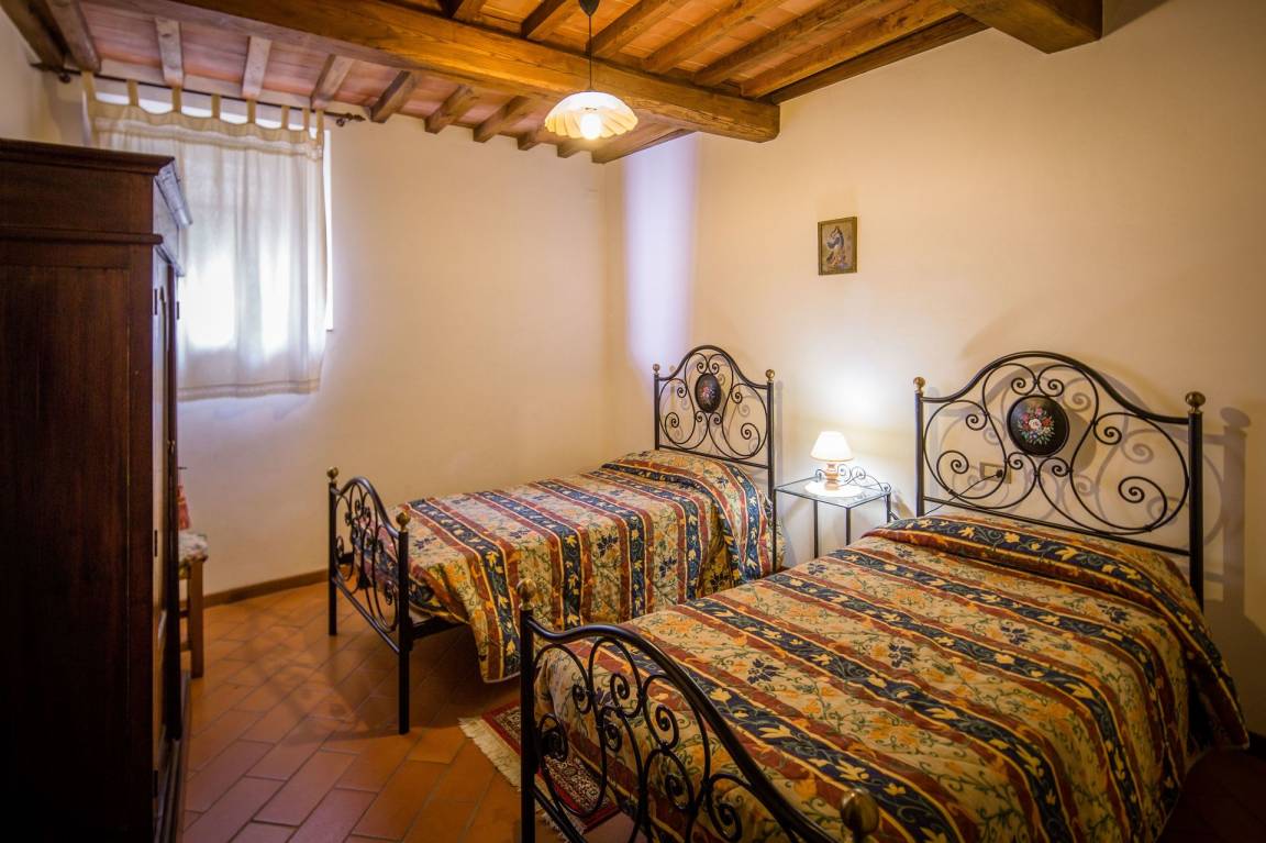 Castagneto (77 m²) ist eine zwei-Zimmer Wohneinheit, die auf eins Etage gebaut ist, mit zwei Badezimmern. Hier können bis zu sieben Leute schlafen.