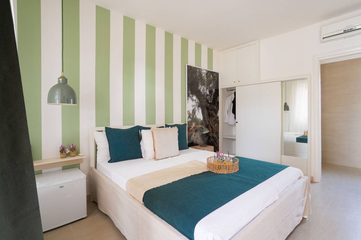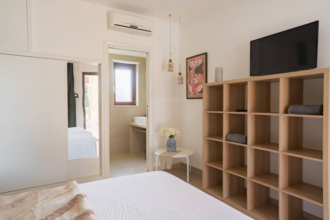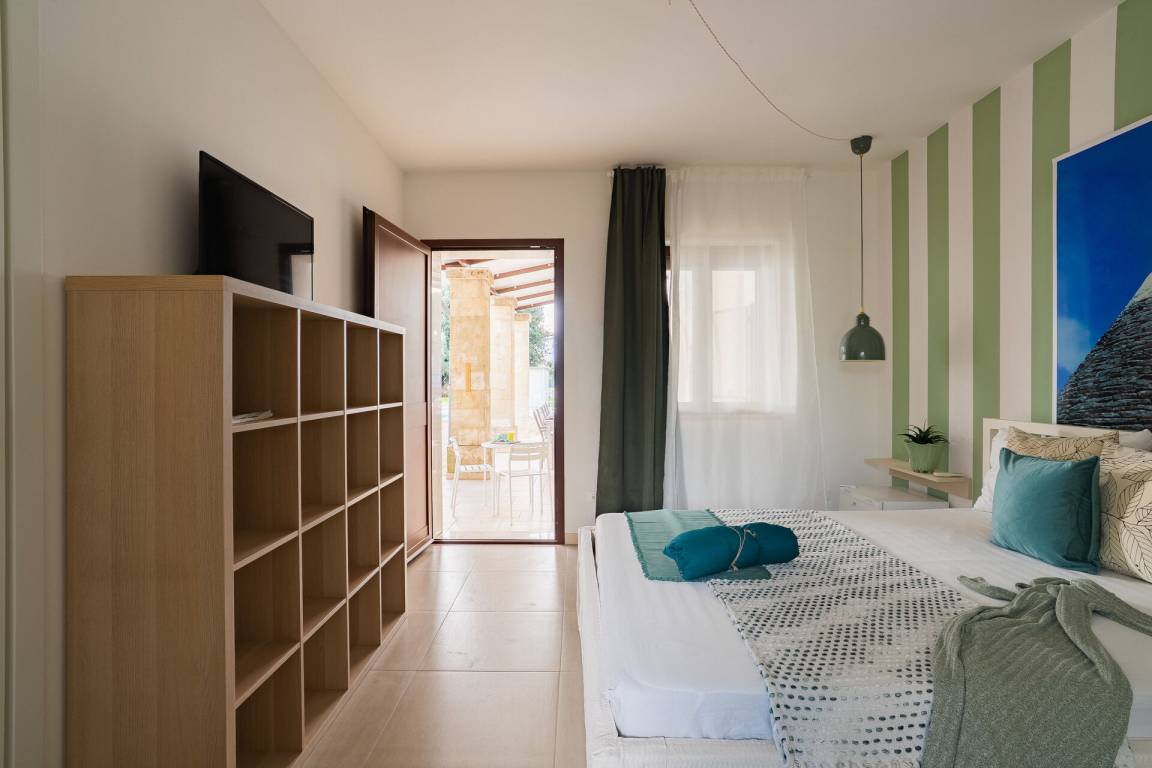 Schlafzimmer mit Bad 3: Doppelbett, Klimaanlage, TV, WC, Dusche, Fön, Ausgang auf den Patio.