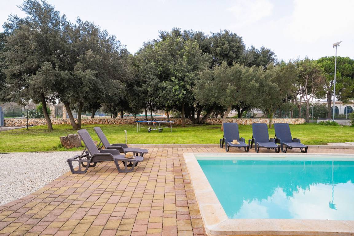 Garten: Schwimmbad, Grill, Esstisch, Gartenmöbel, Sonnenliege, umzäuntes Grundstück.