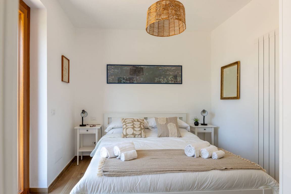 Schlafzimmer mit Bad 1: Doppelbett, WiFi Internet, Waschbecken, WC, Bidet, Dusche.