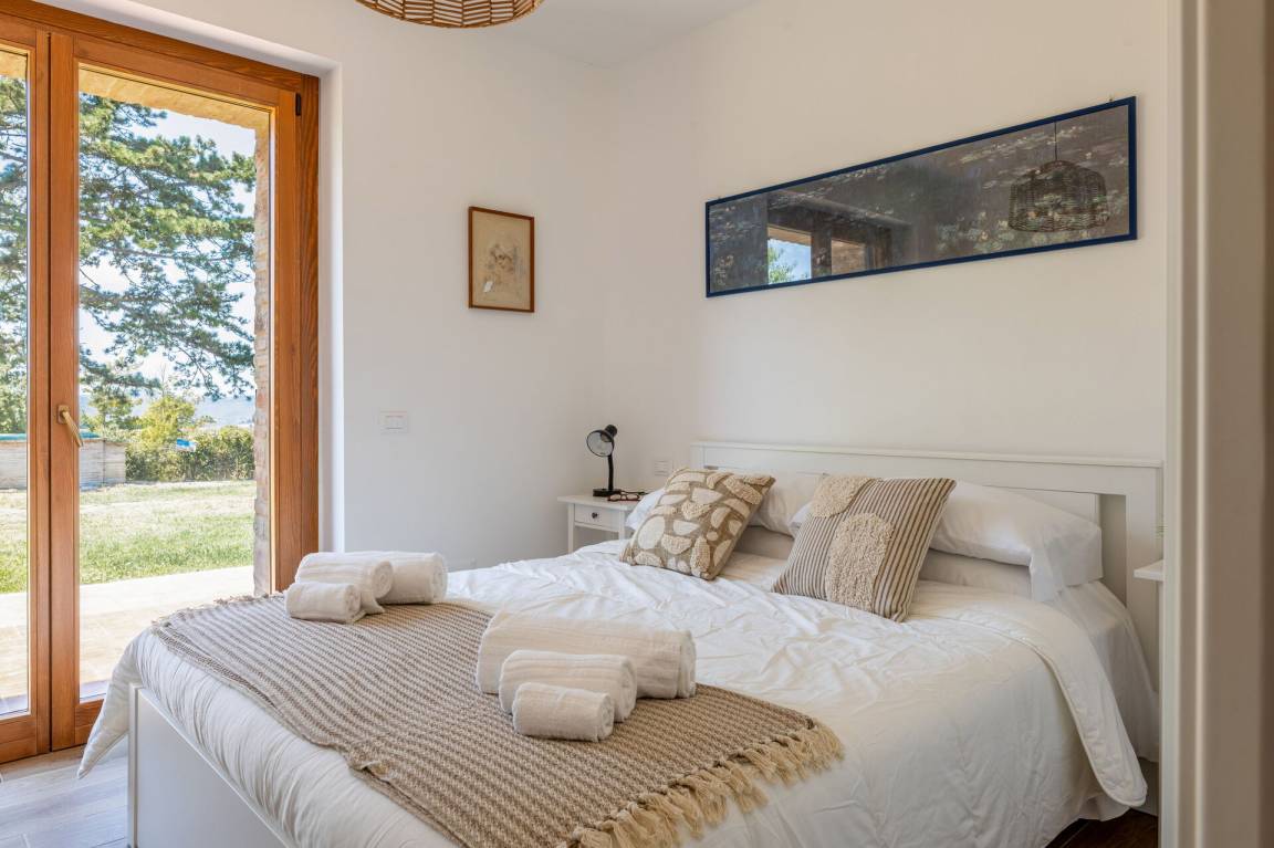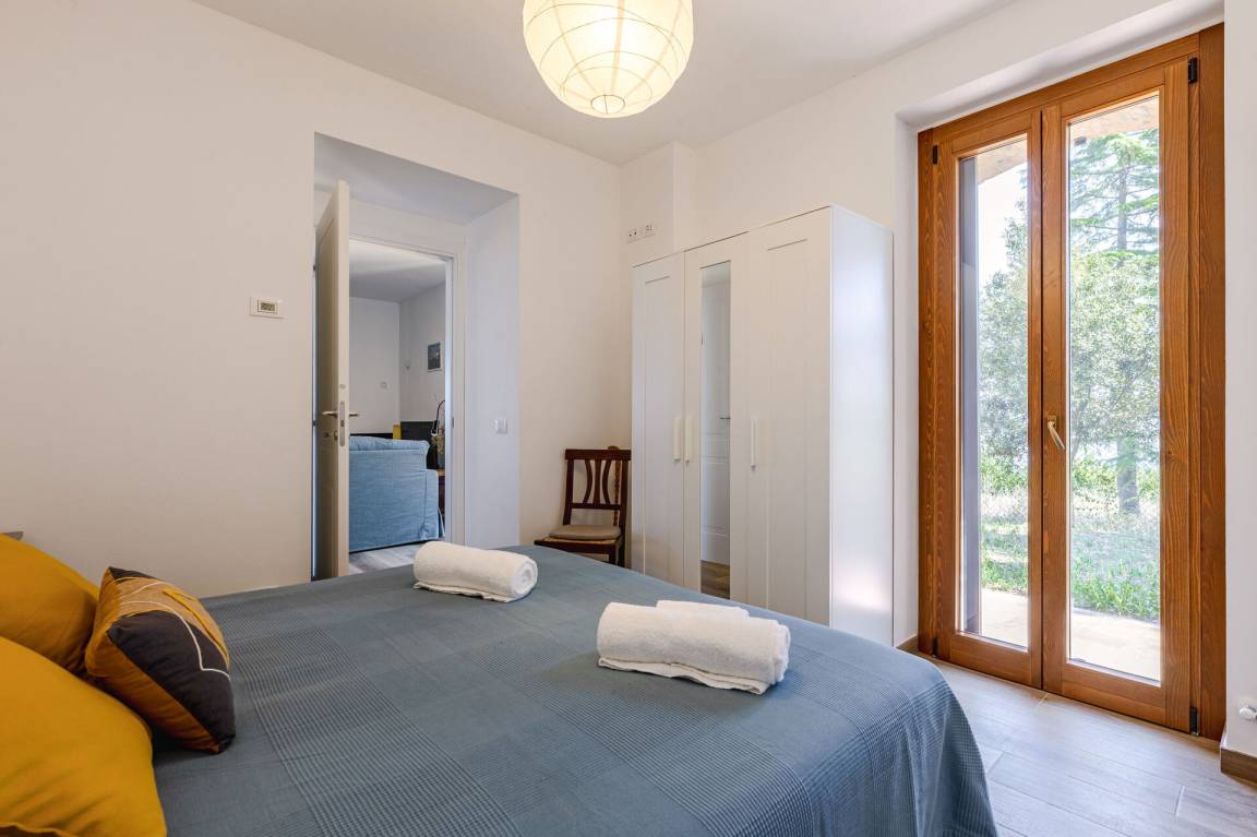 Schlafzimmer mit Bad 2: Doppelbett, WiFi Internet, Waschbecken, WC, Bidet, Dusche.