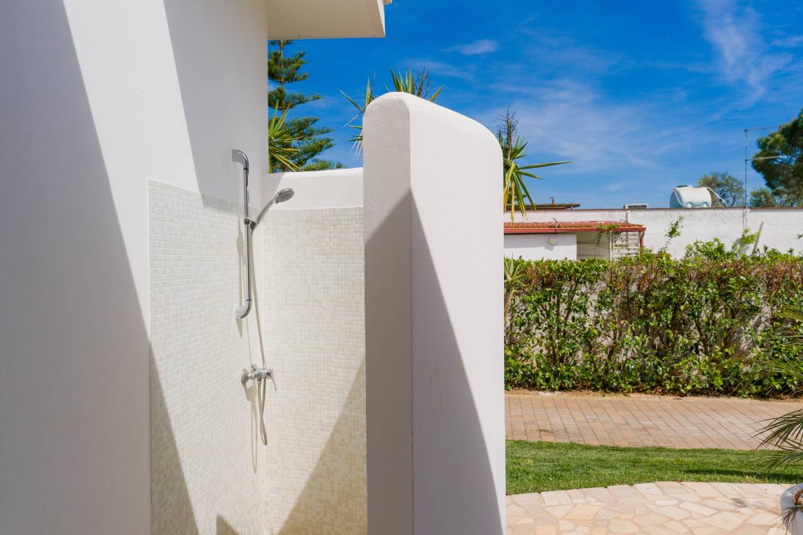 Im Freien haben Sie eigene Räume, einen Esstisch, Wohnzimmer, Grill und Dusche nach dem Strand;