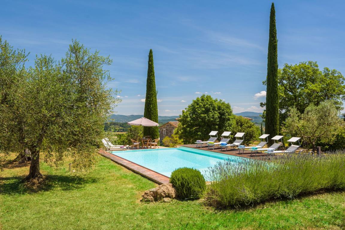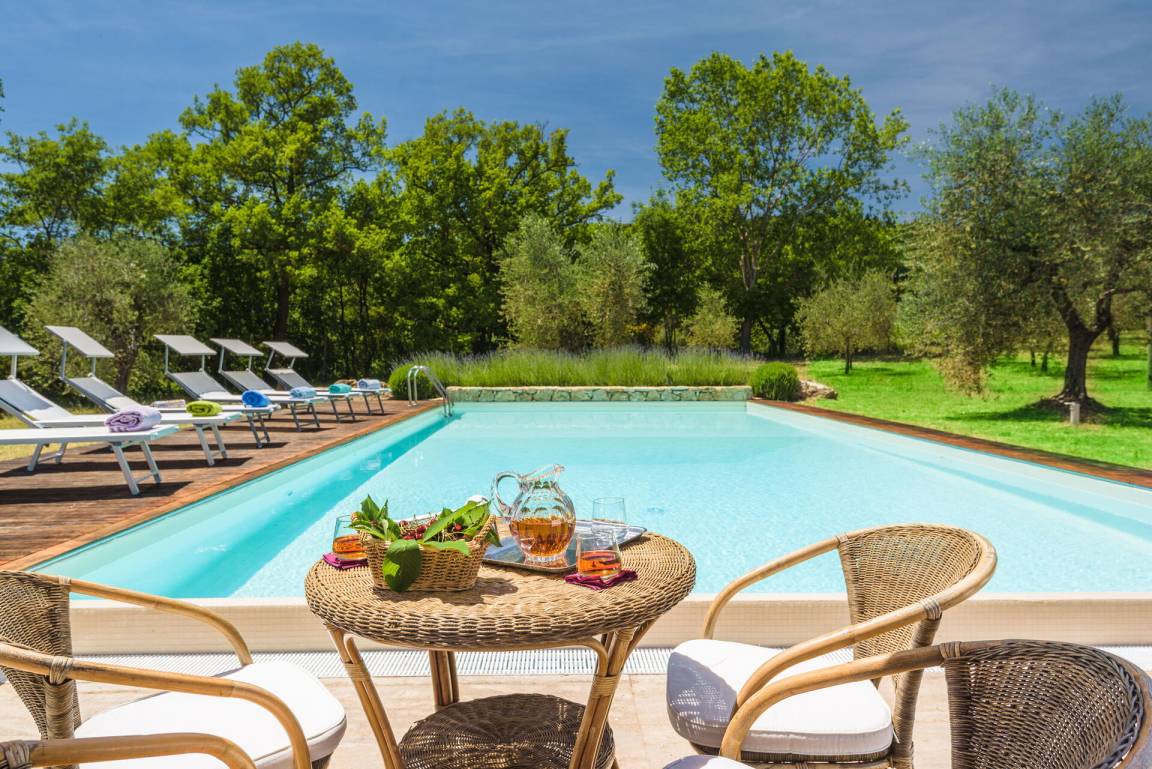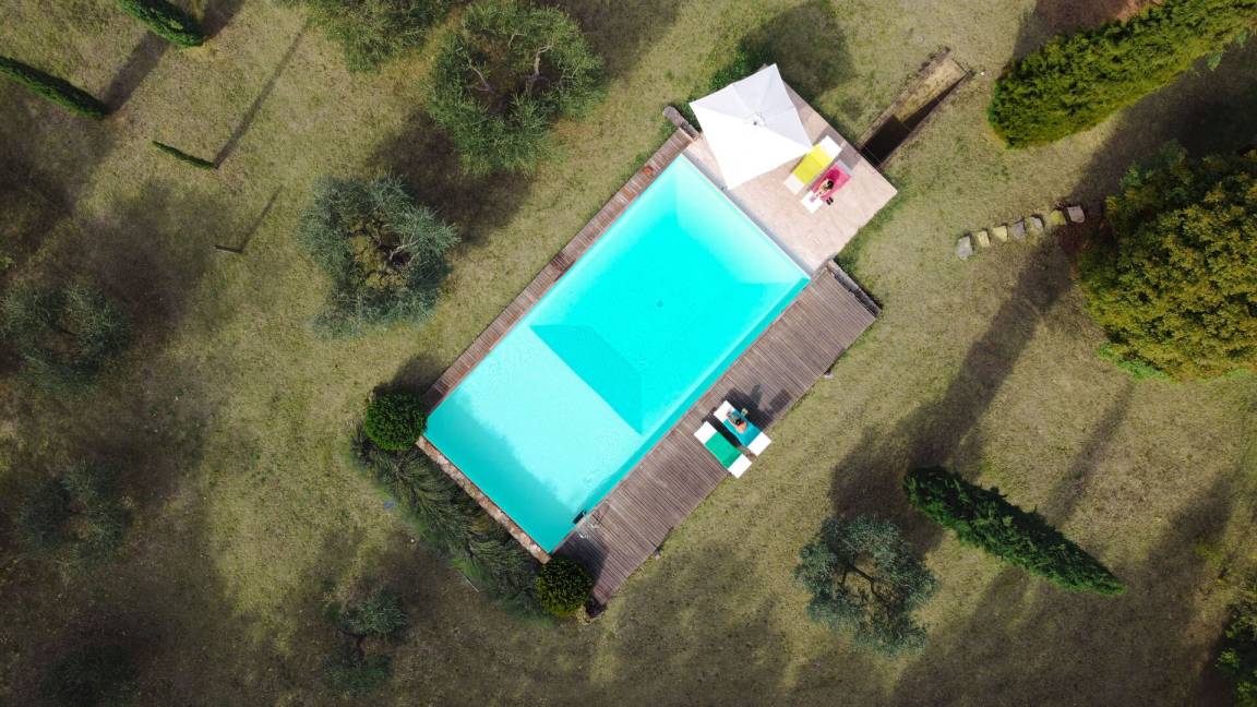 Garten: Schwimmbad (privat, Breite: 6m, Länge: 12.5m, max. Tiefe: 2.2m, min. Tiefe: 1.2m, Außen), WiFi Internet, Grill, Außenbereich für das Essen im Freien, Esstisch (Personen: 8), Pavillon, Gartenmöbel, Terrassenmöbel, sechs Sonnenliegen, eingezäunt, umzäuntes Grundstück.