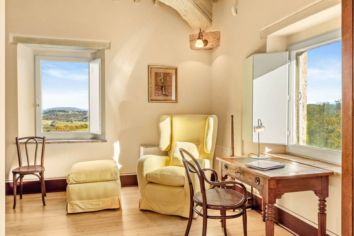 Schlafzimmer mit Bad 1: Doppelbett, Kinderbett, WiFi Internet, Klimaanlage, Fliegengitter, Satelliten-TV, zwei Sessel, Schreibtisch, Waschbecken, WC, Bidet, Badewanne, Dusche, Fön.