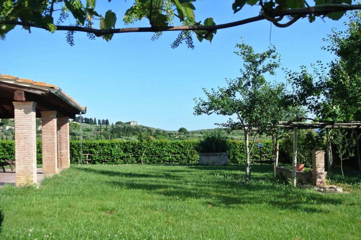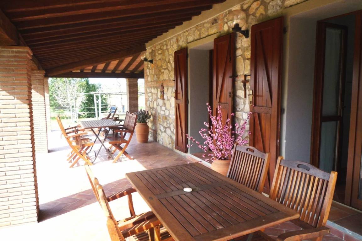 Wohnung im Erdgeschoss mit Eingang über einen großen Bogengang mit Tisch und Stühlen zum Essen im Freien ausgestattet. Wohn-Esszimmer mit Kochnische und Doppelschlafcouch, Doppelzimmer, Bad mit Dusche.