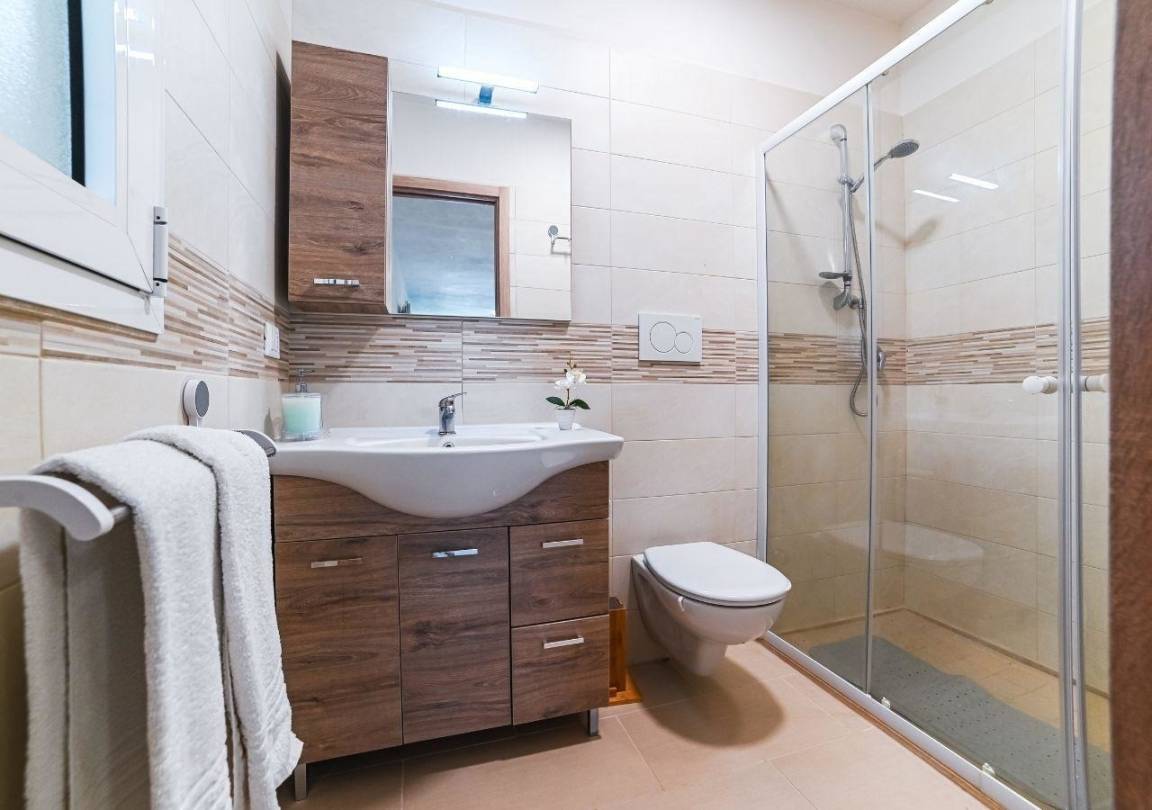 2) In der zweiten Unterkunft finden wir ein großes Doppelzimmer mit Queensize-Bett, Badezimmer mit Fenster und Dusche, WC, Willkommensset mit Shampoo und Duschbad.