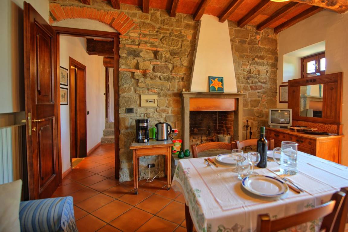 „Die Lage ist sehr ruhig und idyllisch. Als Nachteil haben wir den Weg empfunden. Es führt eine enger und staubiger Schotterweg dorthin, nichts für ängstliche Autofahrer. Der gelbe, feine Staub lagert sich in und auf dem Auto ab. Die Wohnung Rustica ist für 2 Personen gut geeignet. Eine dritte Person muss auf einem Klappsofa in der Wohnküche schlafen, was auch aufgrund des lauten Kühlschrankes ungemütlich ist. Die Ausstattung ist normal. Von der Terasse aus hat man einen wundervollen Blick über Olivenhaine und Wälder. Der Pool ist schnell erreichbar. Ein Nachteil ist die Hellhörigkeit des alten Hauses. Sämtliche Geräusche aus den darüber liegenden Wohnungen sind laut und deutlich zu hören, so dass länger schlafen nur möglich ist, wenn die anderen Gäste auch länger schlafen. Auf dem Hof können Brot, alkoholische Getränke und Gemüse bzw. Obst aus dem Garten erworben werden. Obst und Gemüse gibt es frei. Das zum Hof gehörende Restaurant ist an drei Tagen pro Woche geöffnet und bietet ein leckeres Menue bzw. Pizza an. Beides sehr empfehlenswert. Den hauseigenen Wein sollte man auf keinen Fall auslassen. Da viele Familien mit Kindern anwesend waren, war der Aufenthalt für Kinder ein Vergnügen. Sie knüpften Kontakte und hatten viel Spaß. Wir erlebten eine Mischung unterschiedlicher Nationalitäten, was für die Kinder auch sehr spannend war. Auch muss man sich auf Insekten einstellen (Hornissen, Wespen, Bremsen, Mücken) und das auch am Pool und am Haus.“