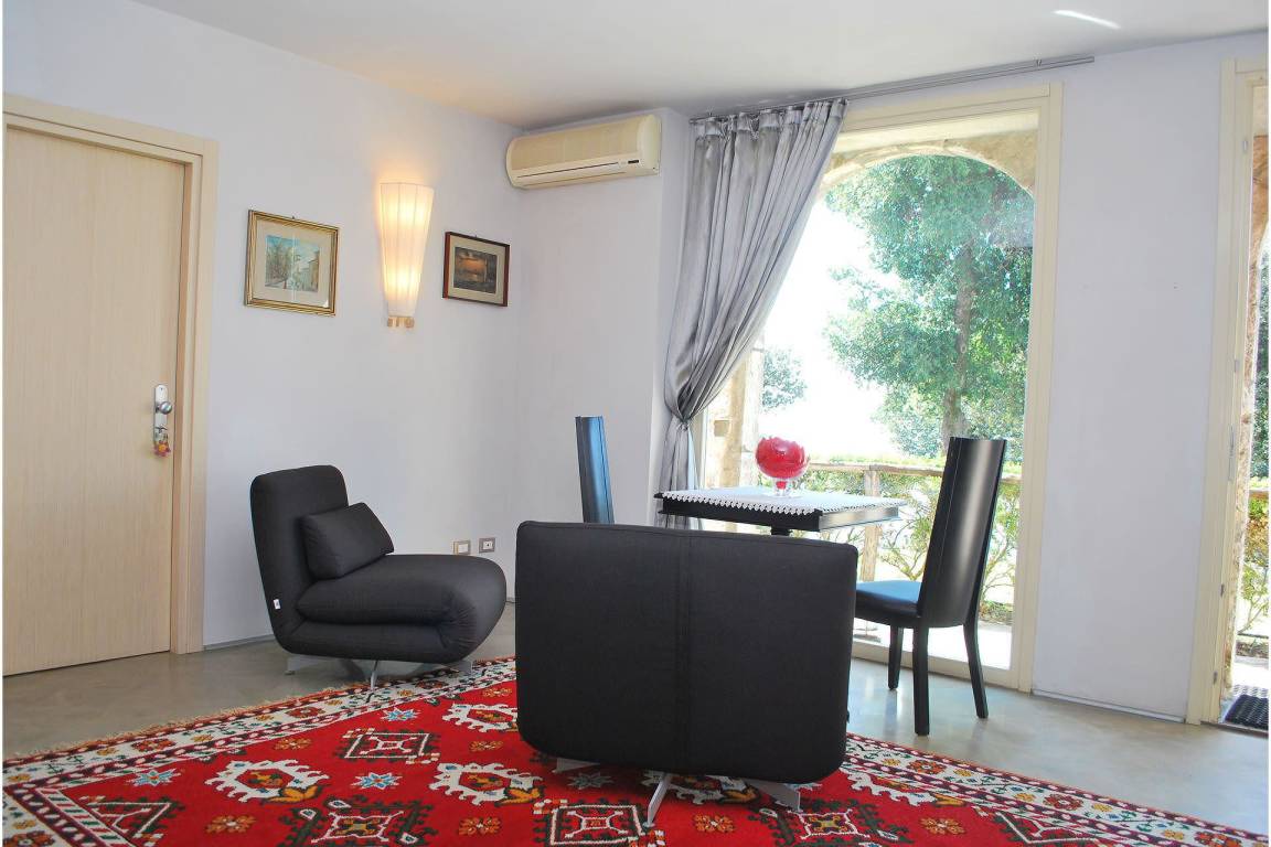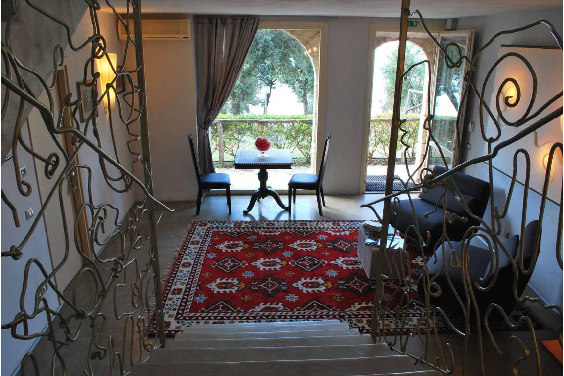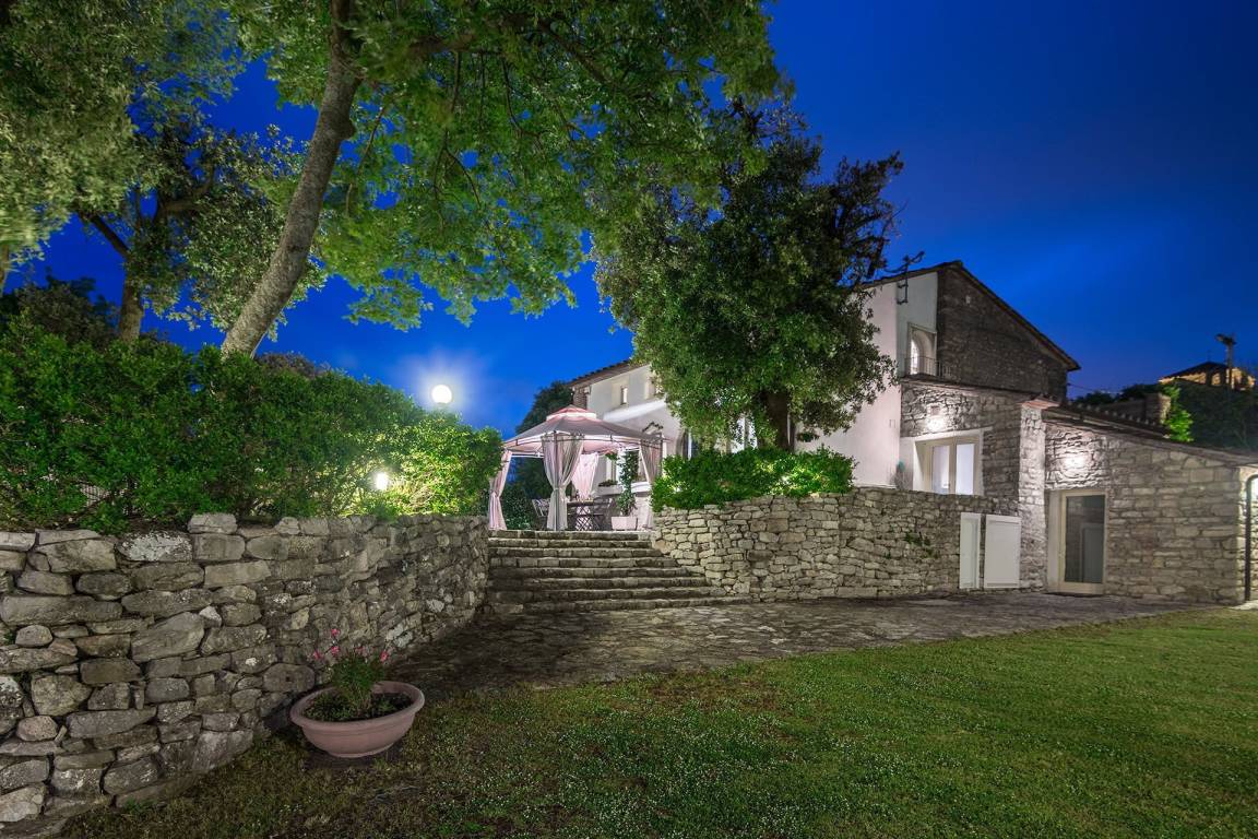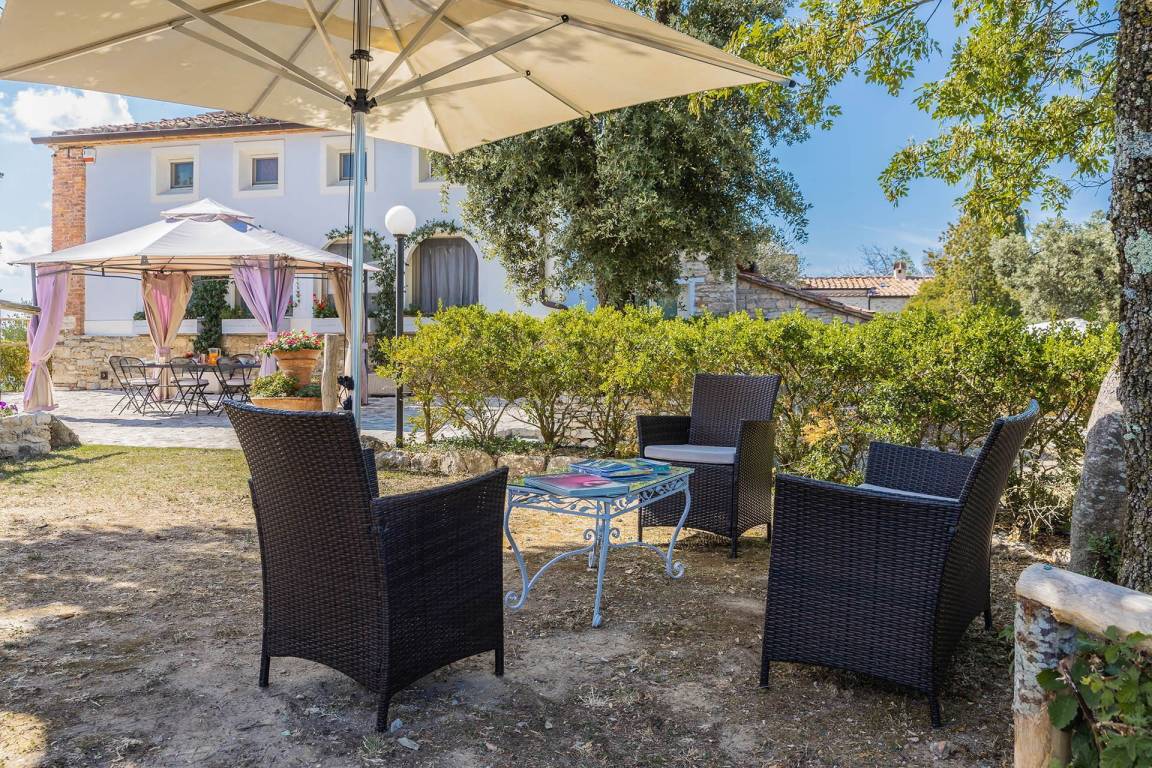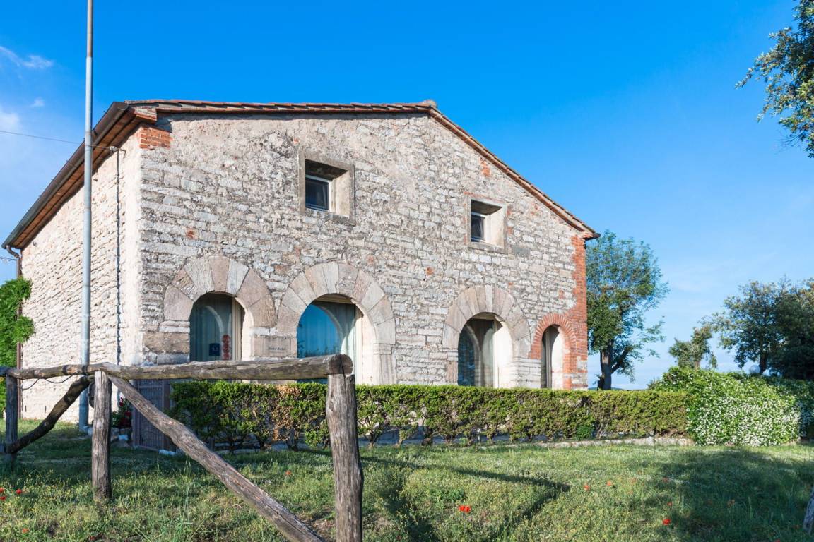 Die Villa liegt auf einem Hügel in der Toskana und bietet Panoramablicke auf die umliegende Landschaft. Ein privater Pool ist vorhanden.