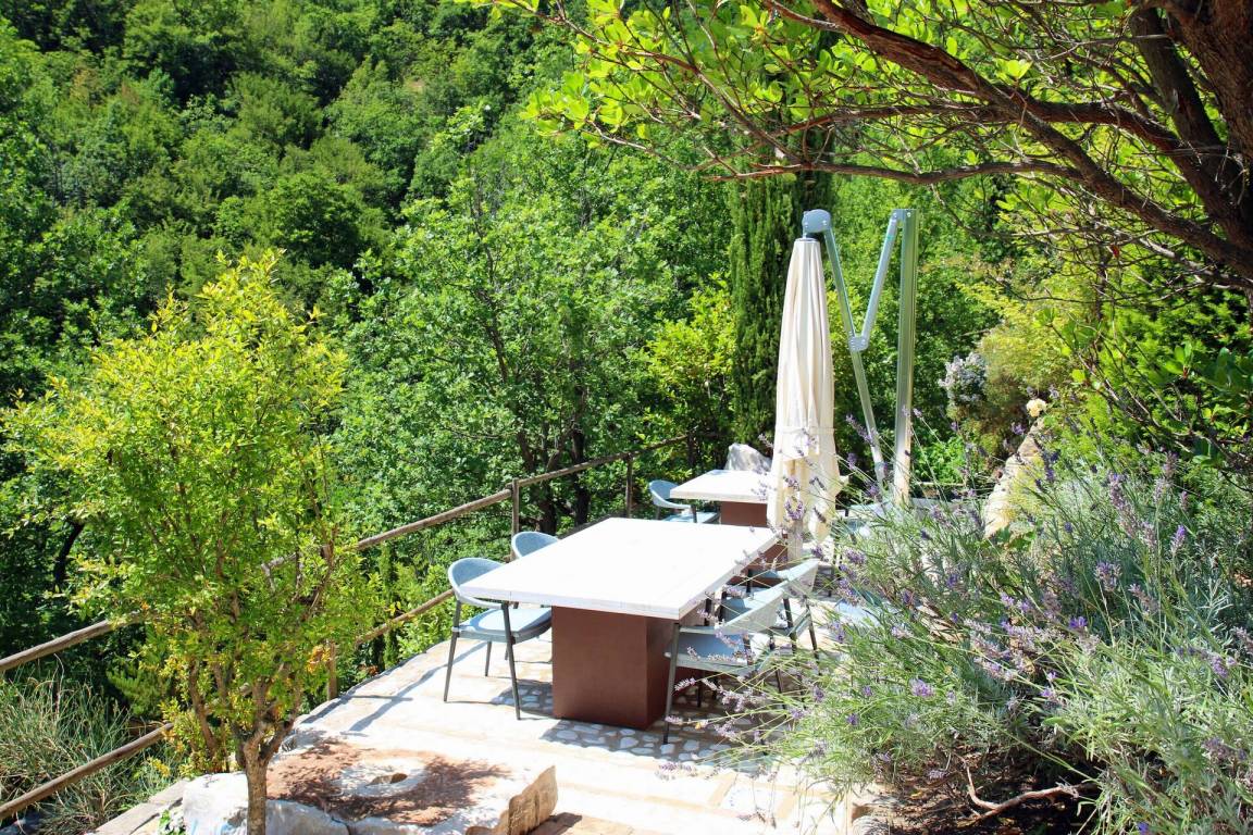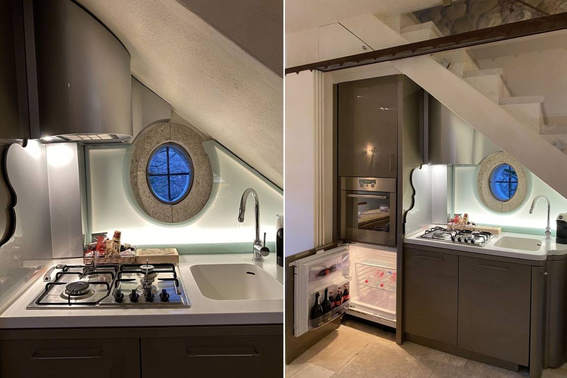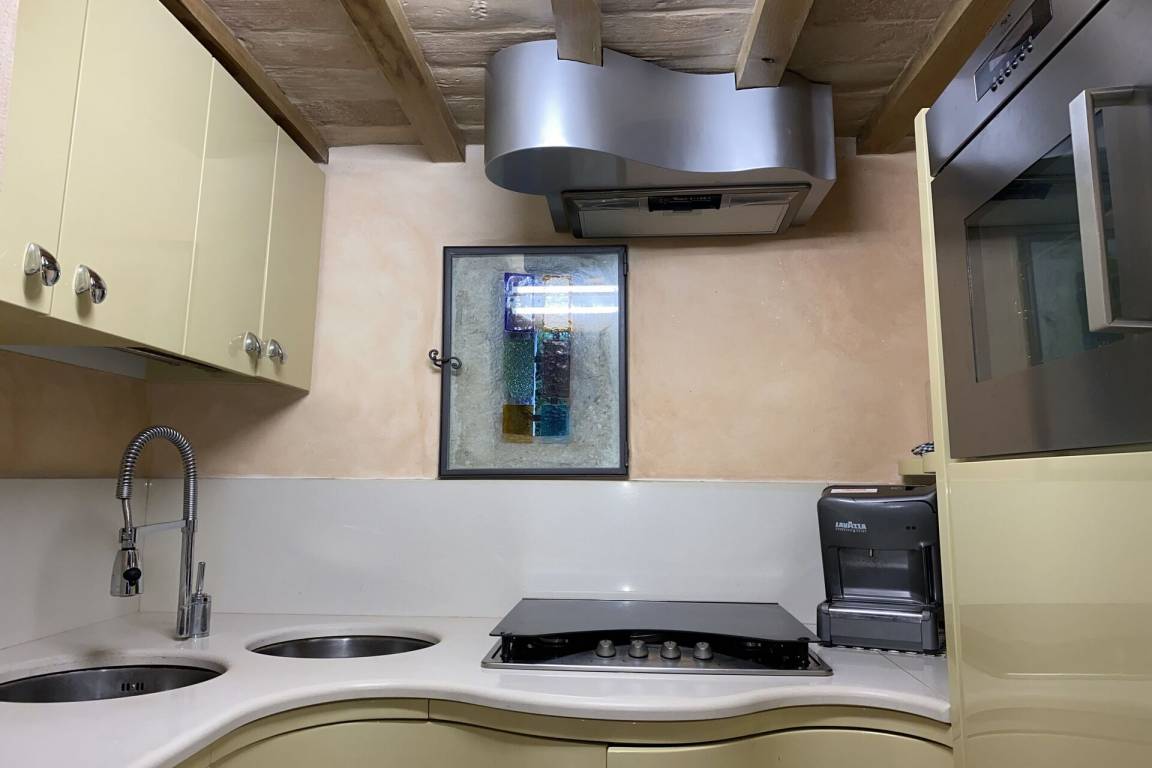 Wohnküche: gut ausgestattete Küche, Esstisch (Personen: 10), Spülmaschine, Kühlschrank, Tiefkühler, Herd, Ofen, zwei Sessel, Doppel-Schlafsofa, WiFi Internet, TV, Ausgang auf den Garten.