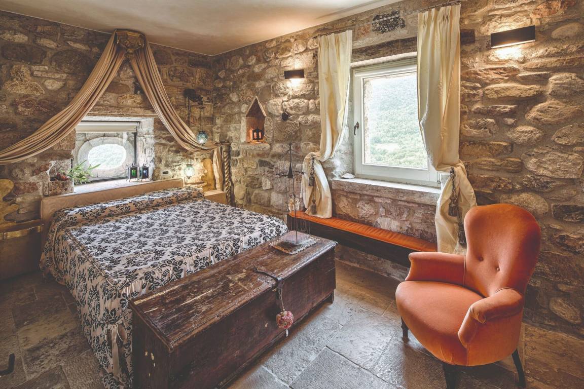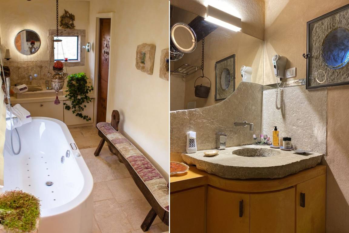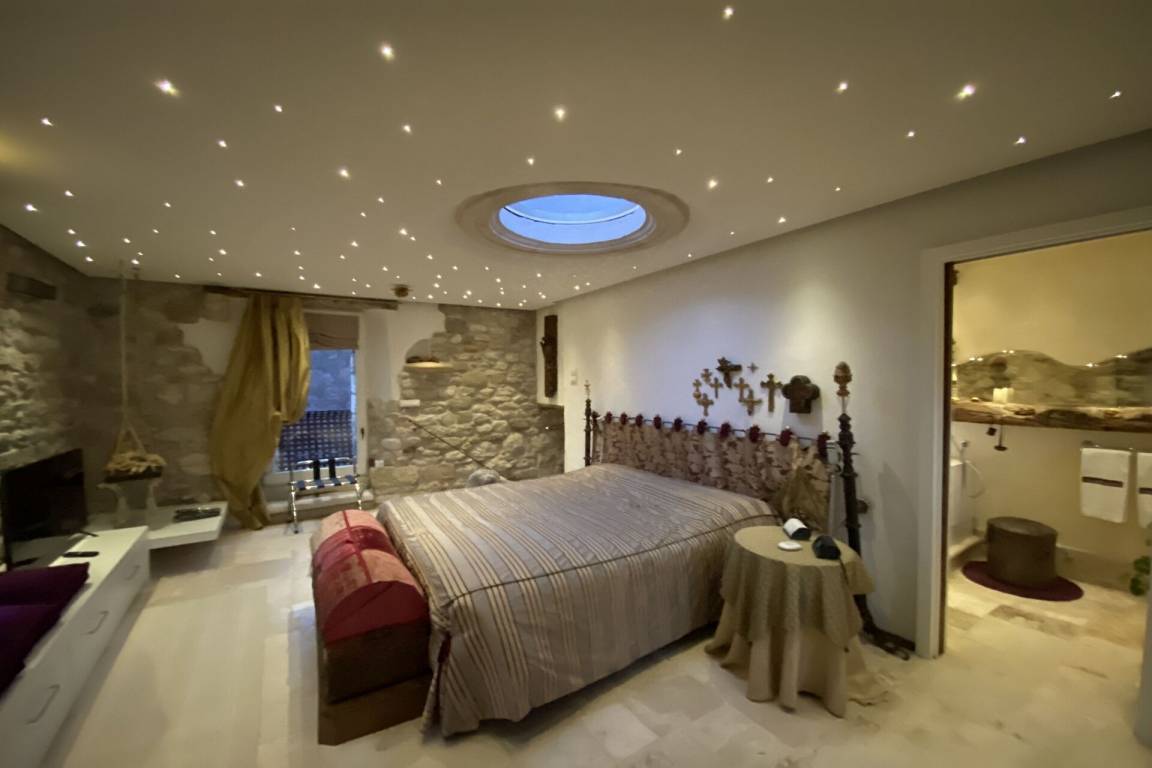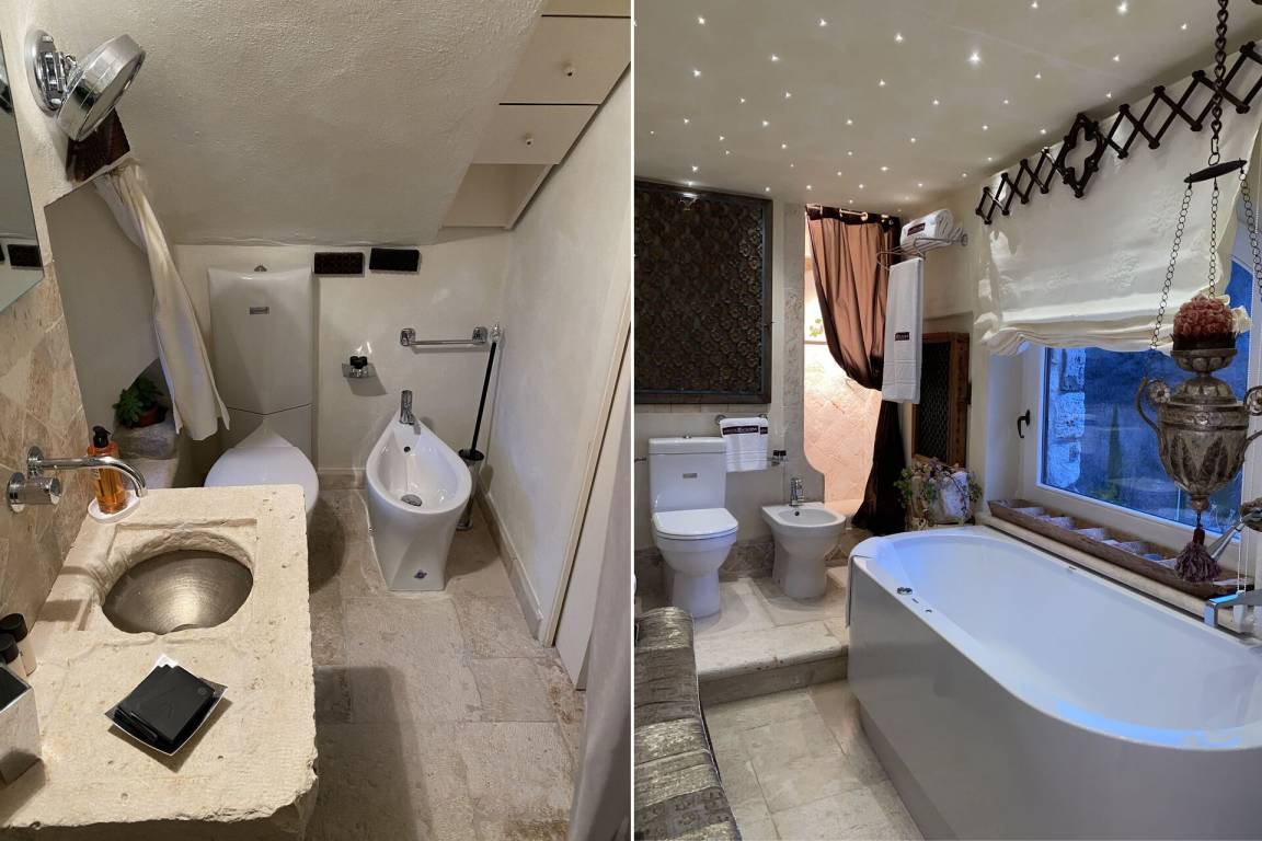 Schlafzimmer mit Bad: Doppelbett, WiFi Internet, Klimaanlage, TV, Sofa, Whirlpool-Badewanne, Waschbecken, WC, Bidet, Dusche.