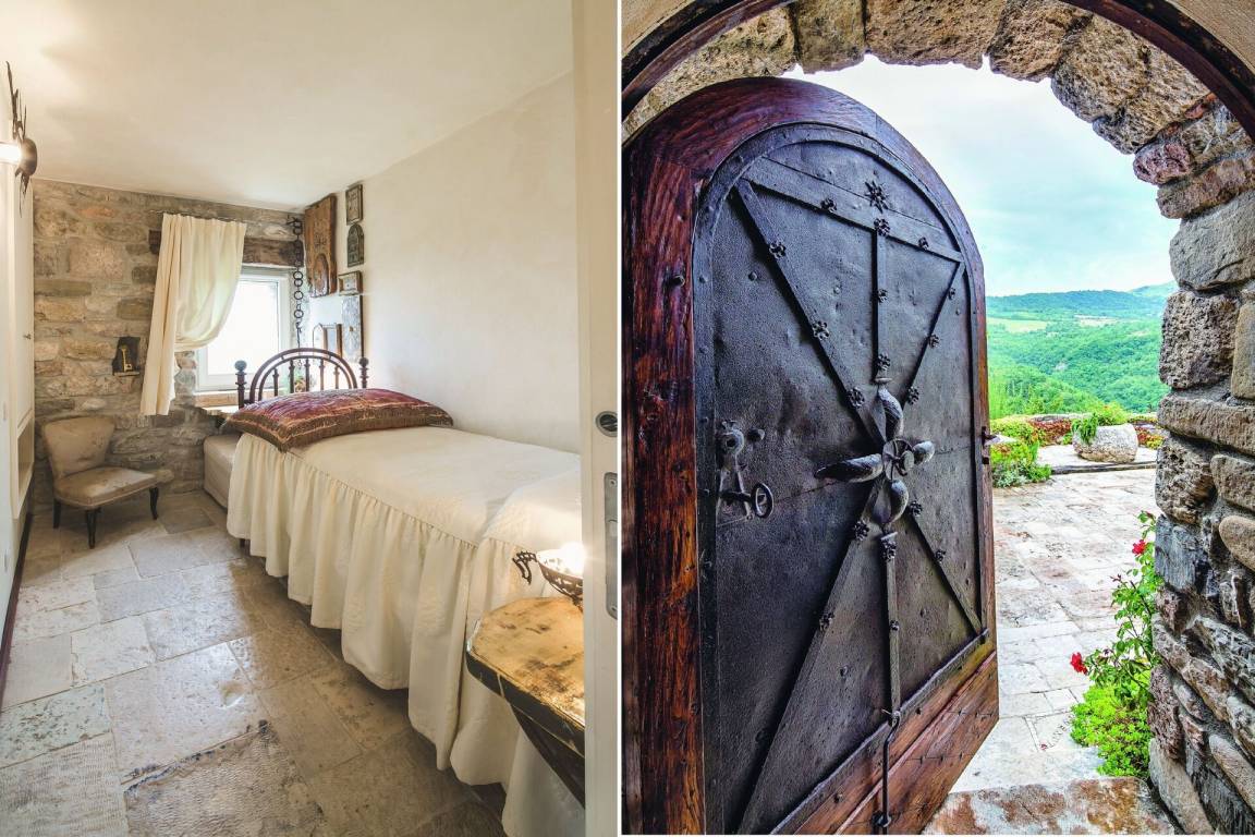 b) Ferienwohnung 2 streckt sich über mehrere Etagen (im 1., 2. und 3. Stock) und hat Platz für bis zu 5 Personen. Zugang ausschließlich über eine kleine externe Metalltreppe (4 Stufen).