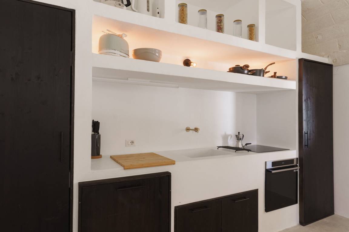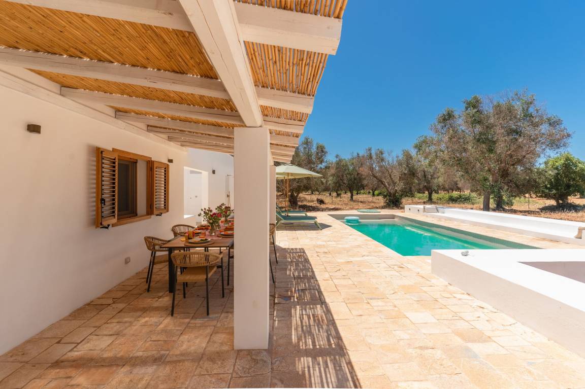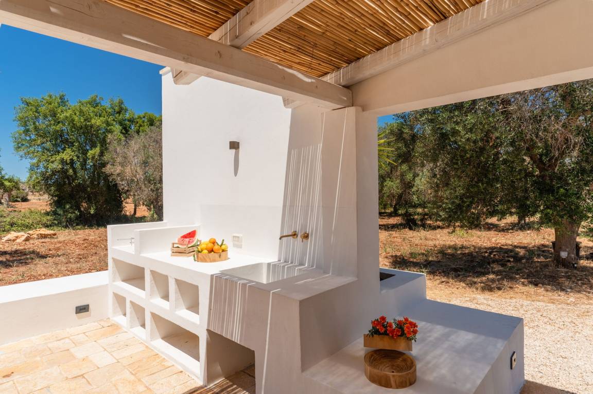 Wohnküche: gut ausgestattete Küche, Esstisch, Spülmaschine, Kühlschrank, Tiefkühler, Mikrowelle, Herd, Ofen, Waschmaschine, Sofa, WiFi Internet, Klimaanlage, Ausgang auf den Patio, Ausgang auf die Veranda.