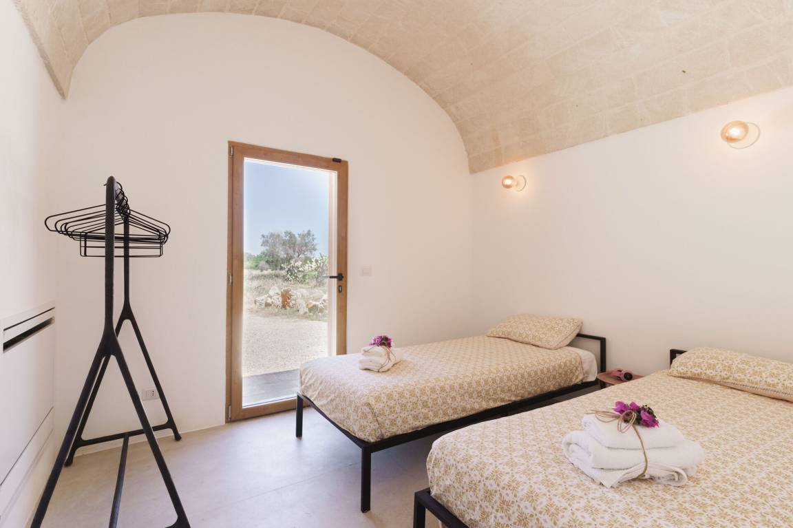 Schlafzimmer 2: zwei Einzelbetten, Klimaanlage, Ausgang auf den Garten.