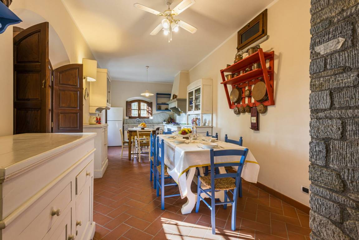 Küche: zwei Esstische (Personen: 10), Spülmaschine, Kühlschrank, Tiefkühler, Herd, Ofen, Italienische Kaffeemaschine, WiFi Internet.