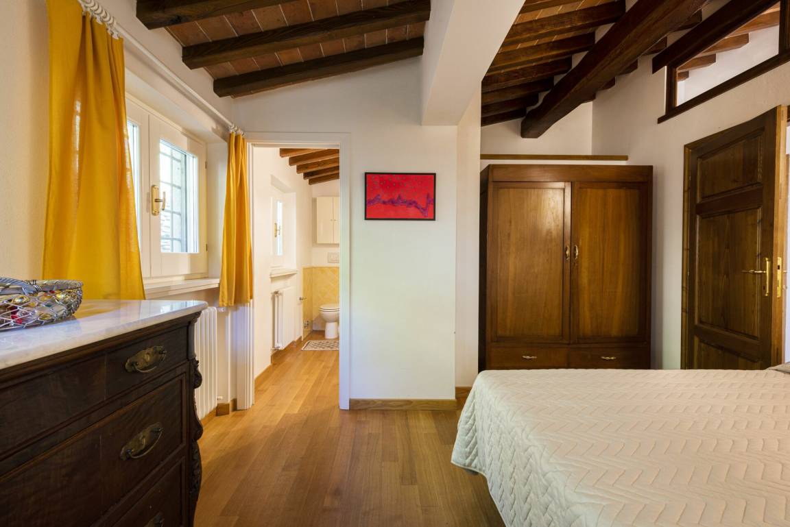 Schlafzimmer mit Bad 1: Doppelbett, WiFi Internet, Fliegengitter, Waschbecken, WC, Bidet, Dusche, Ausgang auf die Terrasse.