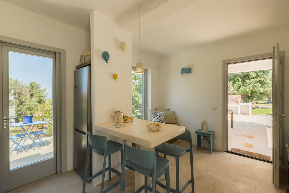 Die Villa Riva umfasst insgesamt 250 Quadratmeter und ist in 2 separate Einheiten unterteilt, die zusammen maximal 8 Gäste in 4 Schlafzimmern und 2 Bädern aufnehmen. Die erste Einheit bildet den modernen Gebäudeteil und verfügt über einen Wohnbereich mit Sofas, einen Esstisch, einen Fernseher und eine vollständig ausgestattete Küche. Dieser zeitgenössische Flügel enthält 2 Doppelschlafzimmer und 1 Bad mit Dusche. Die zweite Einheit ist ein restaurierter antiker Saracen Trullo, dessen ursprünglicher Charakter bewahrt wurde. Dieser historische Bereich beherbergt eine zweite vollständig ausgestattete Küche, ein Esszimmer mit direktem Meerblick, 2 weitere Doppelschlafzimmer und ein weiteres Bad mit Dusche.