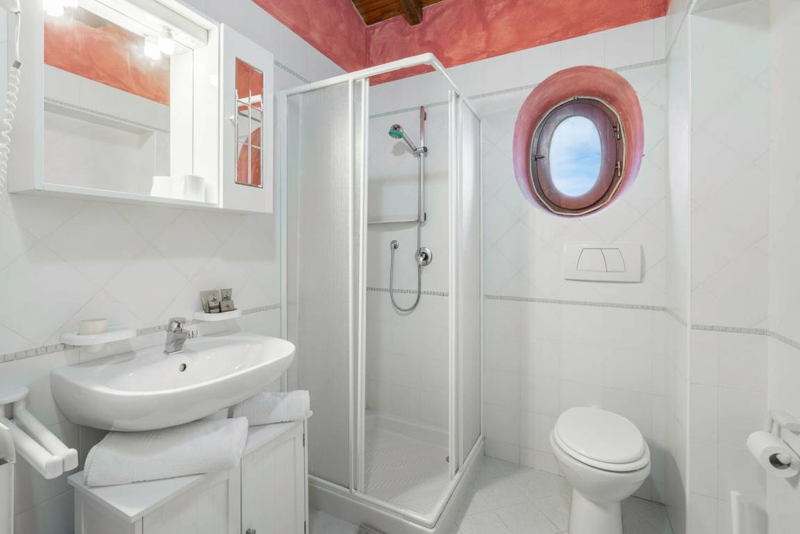 Badezimmer: Waschbecken, WC, Bidet, Dusche, Fön, WiFi Internet.