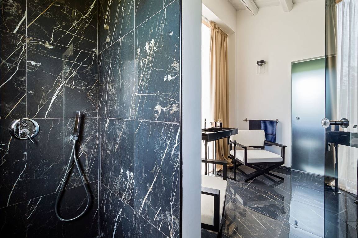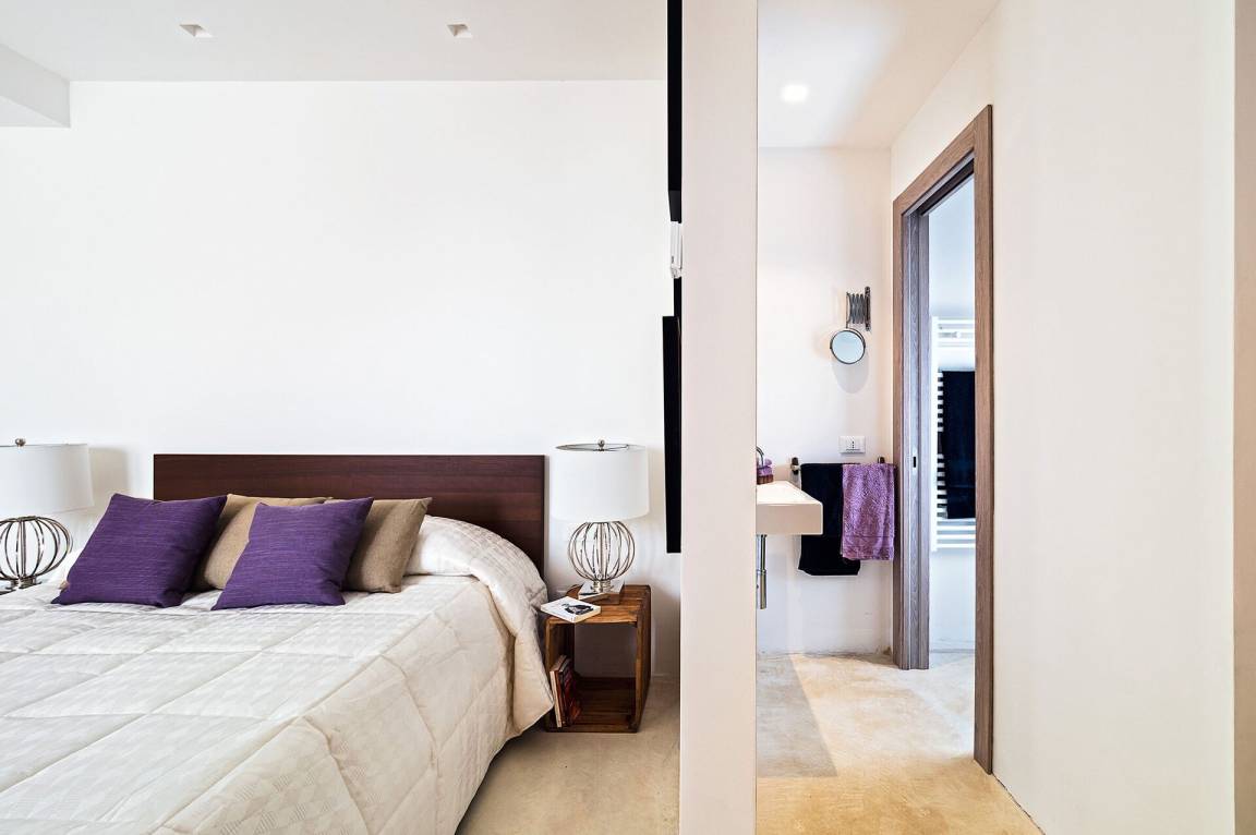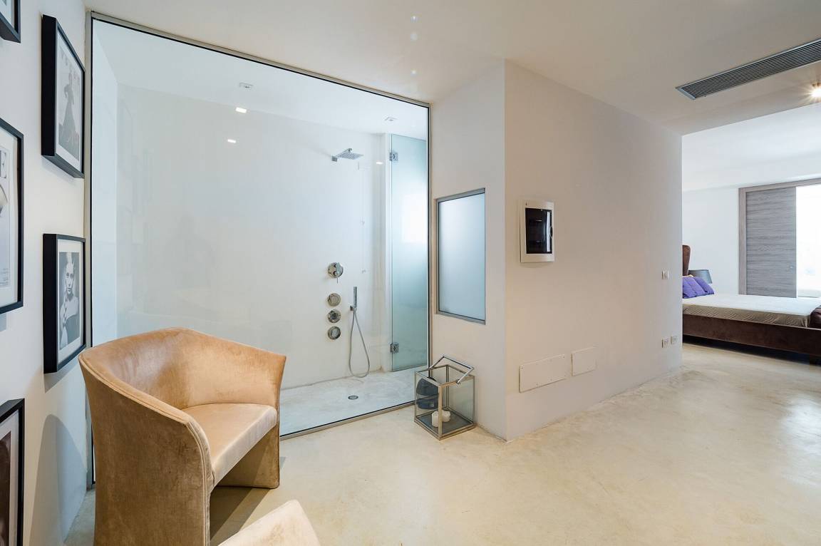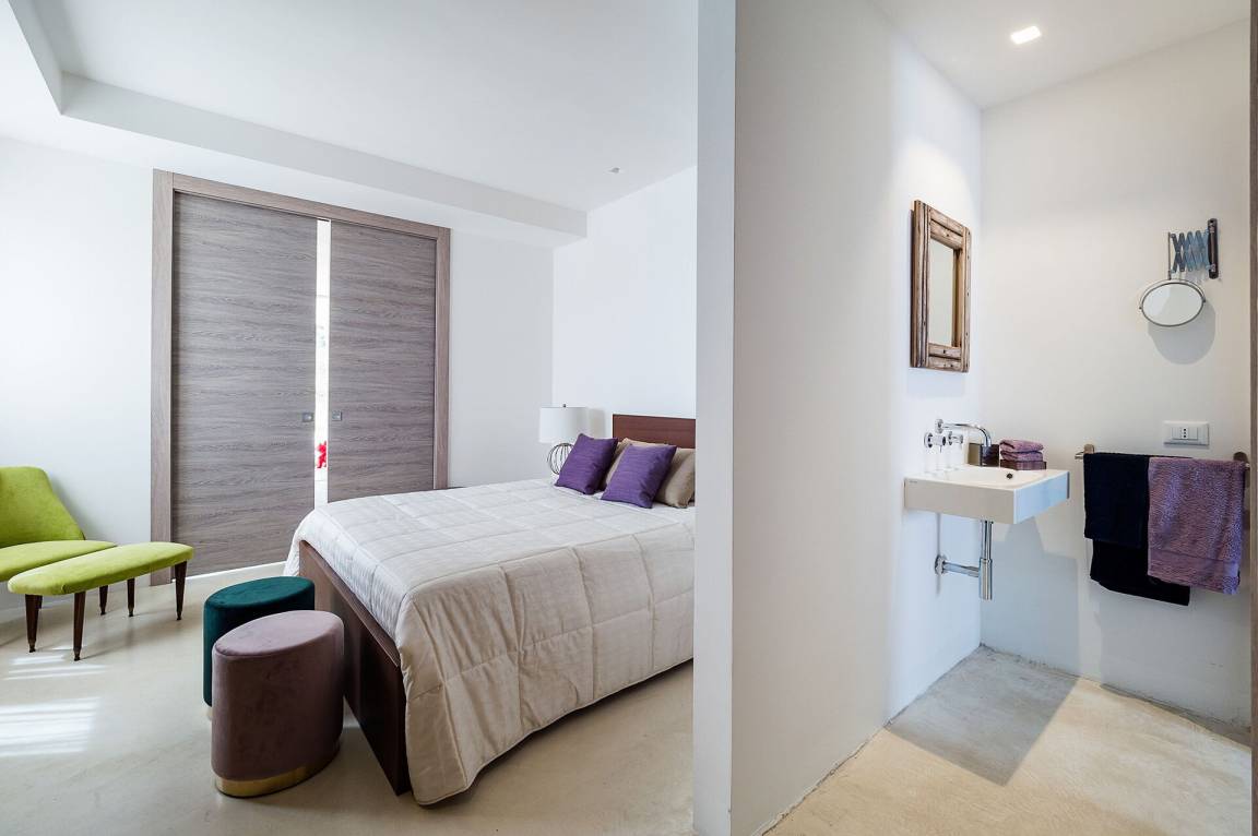 Schlafzimmer mit Bad 2: Doppelbett, WiFi Internet, Internet, Klimaanlage, Sofa, Sessel, Waschbecken, WC, Bidet, Dusche.