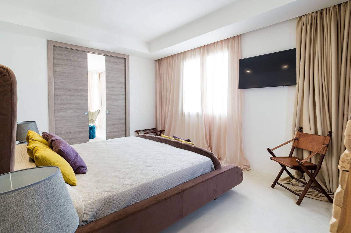 Schlafzimmer mit Bad 1: großes Doppelbett, Krippe, WiFi Internet, Internet, Klimaanlage, Fliegengitter, TV, Sofa, Sessel, Waschbecken, WC, Bidet, Dusche, Fön.