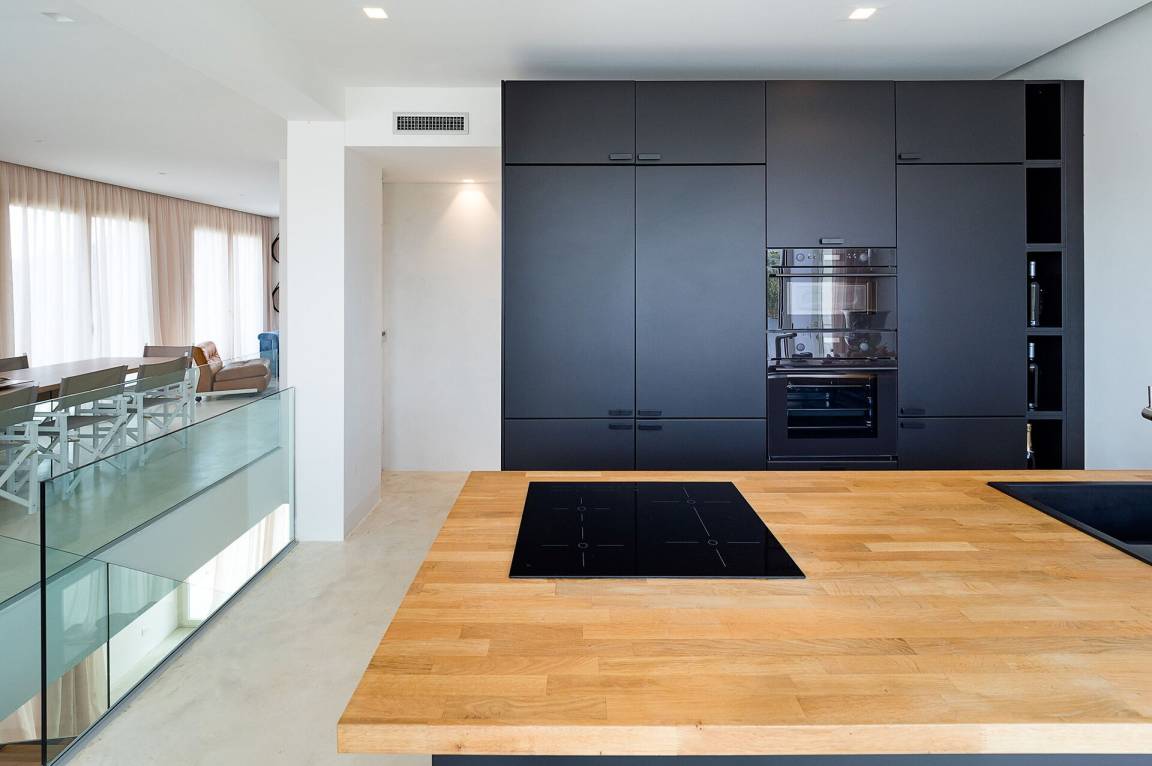 Wohnküche: gut ausgestattete Küche, Esstisch, Spülmaschine, Kühlschrank, Tiefkühler, Mikrowelle, Herd, Ofen, Toaster, Bügeleisen, Italienische Kaffeemaschine, Amerikanische Kaffeemaschine, Sofa, Sessel, WiFi Internet, Internet, Klimaanlage, Fliegengitter, Kinderhochstuhl, TV, Ausgang auf den Patio.