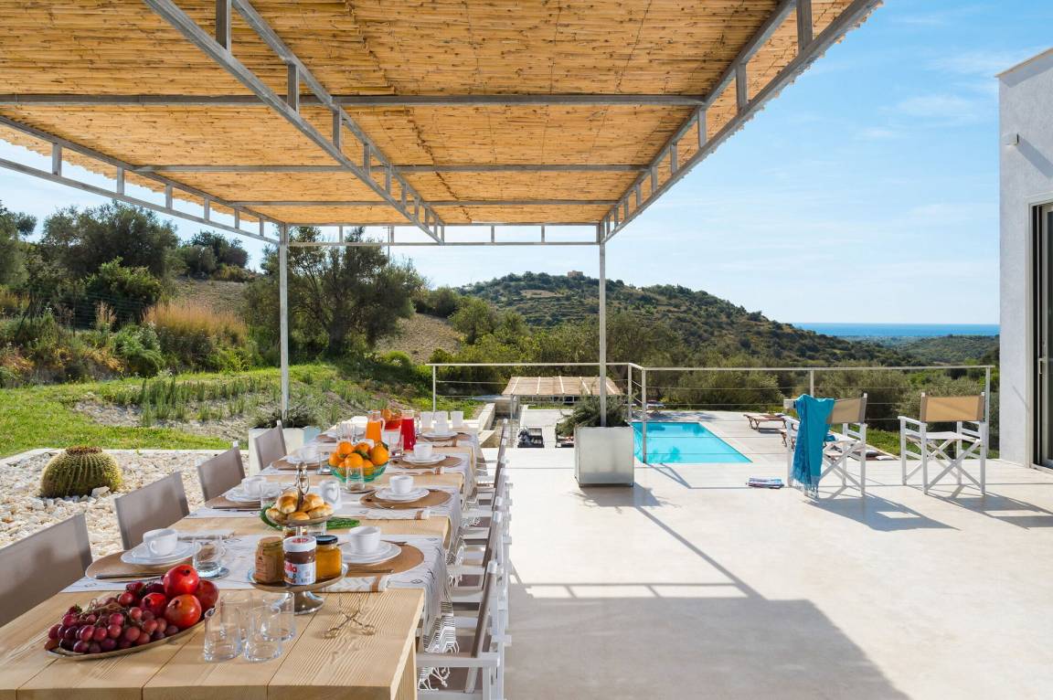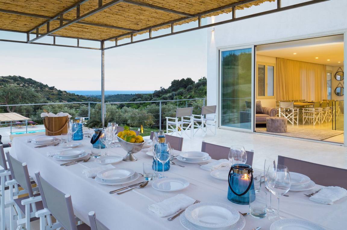 Terrasse: Außenbereich für das Essen im Freien, Esstisch (Personen: 10), WiFi Internet, Terrassenmöbel, zehn Sonnenliegen.