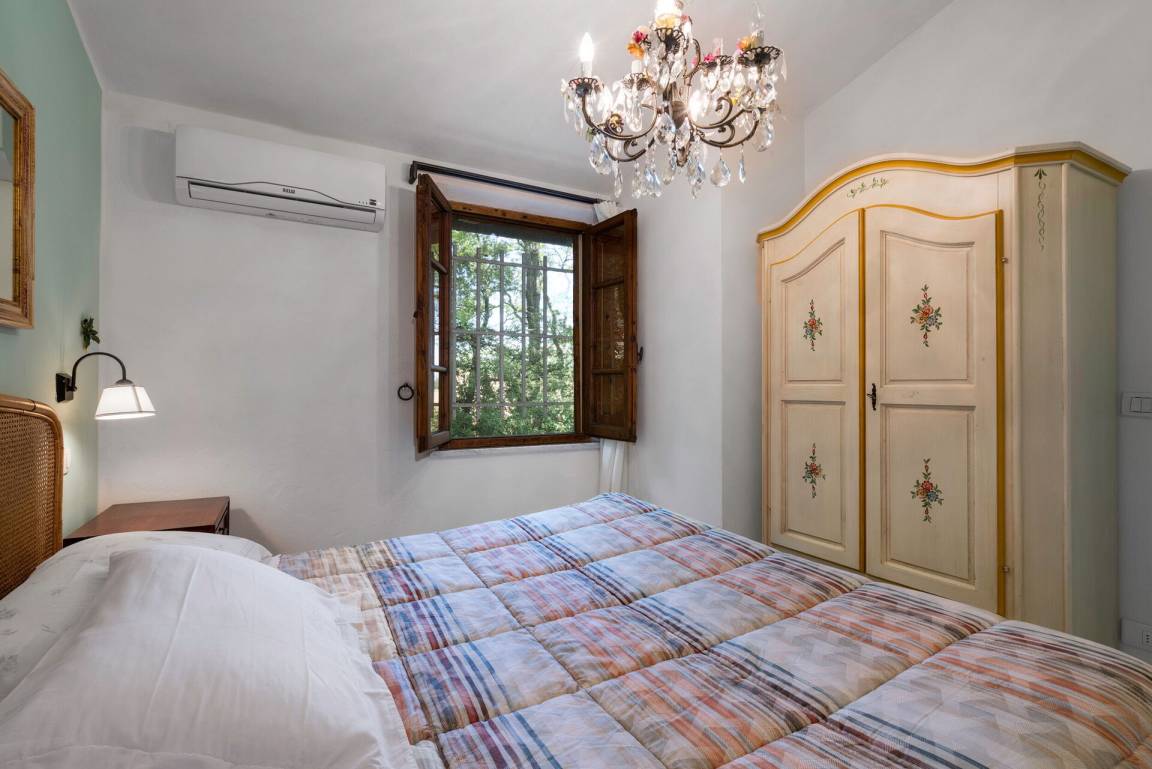 Schlafzimmer mit Bad 2: Doppelbett, WiFi Internet, Klimaanlage, Waschbecken, WC, Bidet, Dusche.