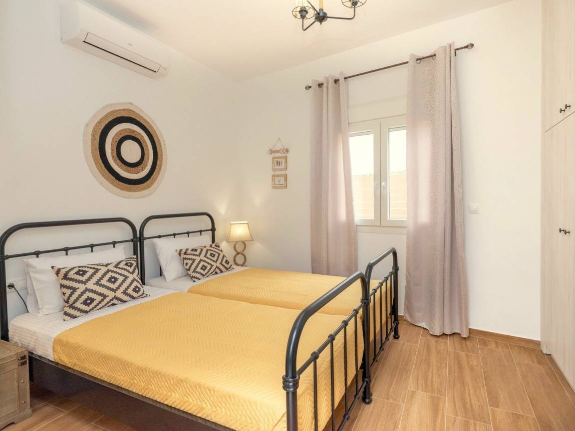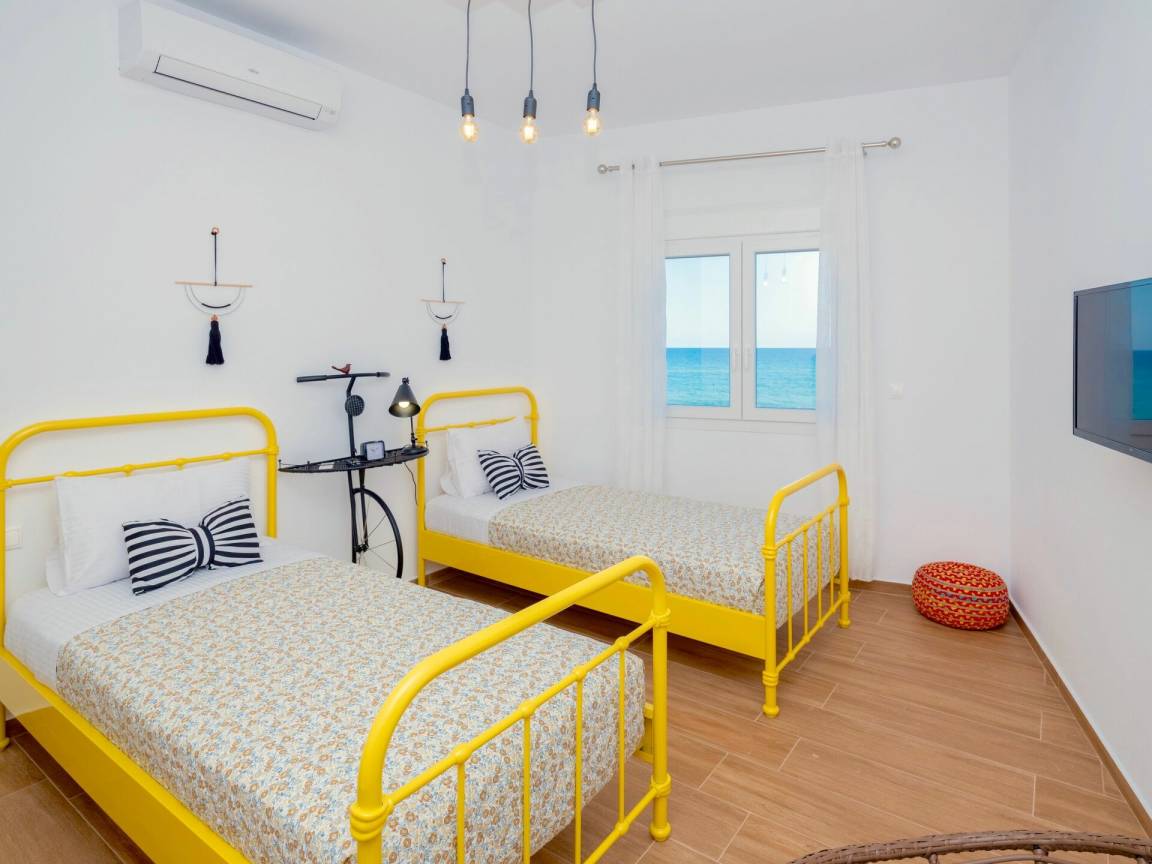 Schlafzimmer mit Bad 6: zwei Einzelbetten, Klimaanlage, Waschbecken, WC, Dusche, Badezimmer ohne Fenster.