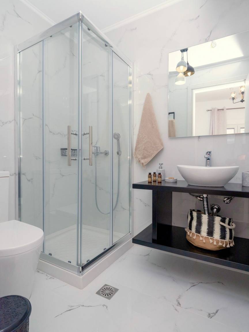 Mit Wohnküche, 6 Schlafzimmer mit Bad, Badezimmer.