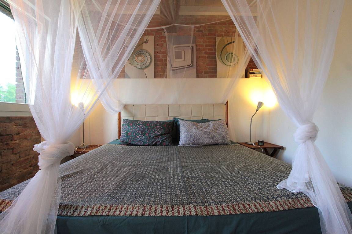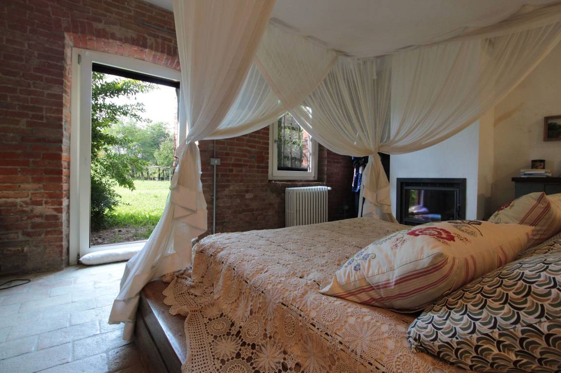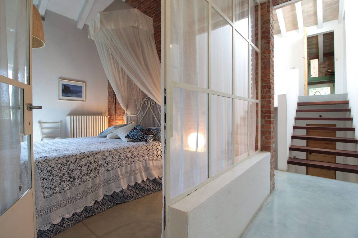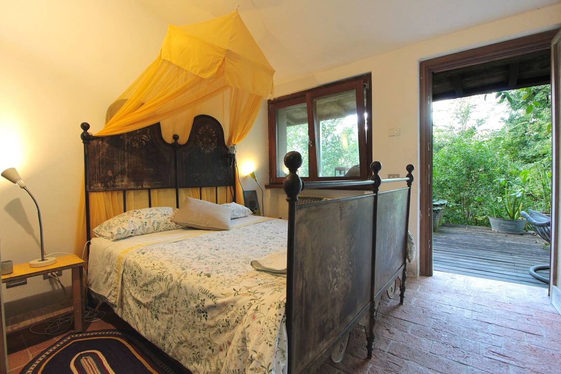 Schlafzimmer mit Bad: Doppelbett, WiFi Internet, Waschbecken, WC, Bidet, Dusche, Ausgang auf den Garten.