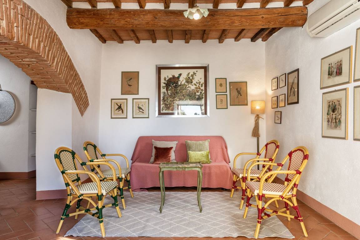 L'Iride ist eine Wohnung im Agriturismo La Papessa in San Donato, ideal für sechs Personen, mit separatem Eingang im Erdgeschoss, bestehend aus einem Wohnzimmer mit Doppelschlafsofa und einer großen Küche, einem Schlafzimmer mit Doppelbett, ein Schlafzimmer mit zwei Einzelbetten und ein Badezimmer mit Dusche.
