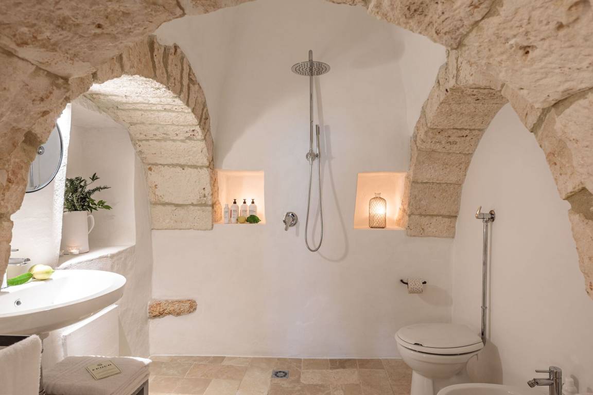 Schlafzimmer mit Bad 1 (24 m²): Doppelbett (Breite: 2m, Länge: 1.6m), WiFi Internet, Internet, Klimaanlage, Satelliten-TV, Schreibtisch, Safe, WC, Bidet, Dusche, Fön, Rauchmelder, CO2 Detektor, Ausgang auf den Balkon, Ausgang auf den Garten, Ausgang auf den Patio.