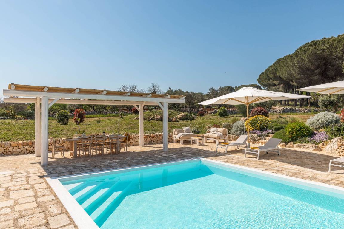 Garten (800 m²): Schwimmbad (Breite: 9m, Länge: 5m, max. Tiefe: 1.4m, min. Tiefe: 1m, Tiefe: 1.4m, Außen), Dusche, WiFi Internet, Grill, Außenbereich für das Essen im Freien, Esstisch (Personen: 10), Pavillon, Gartenmöbel, Sonnenliege, eingezäunt, umzäuntes Grundstück.