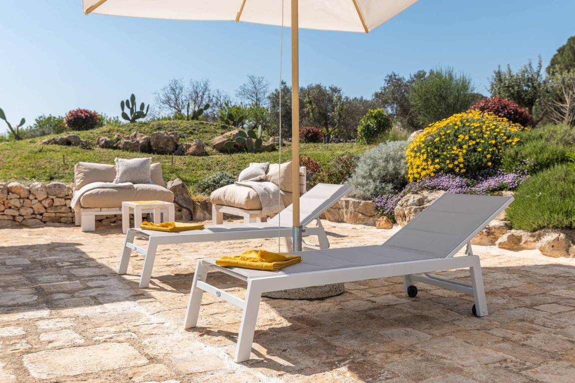 Schlafzimmer mit Bad 5 (24 m²): Doppelbett (Breite: 2m, Länge: 1.6m), WiFi Internet, Internet, Klimaanlage, Satelliten-TV, Schreibtisch, Safe, WC, Bidet, Dusche, Fön, Rauchmelder, CO2 Detektor, Ausgang auf den Balkon, Ausgang auf den Garten, Ausgang auf den Patio.