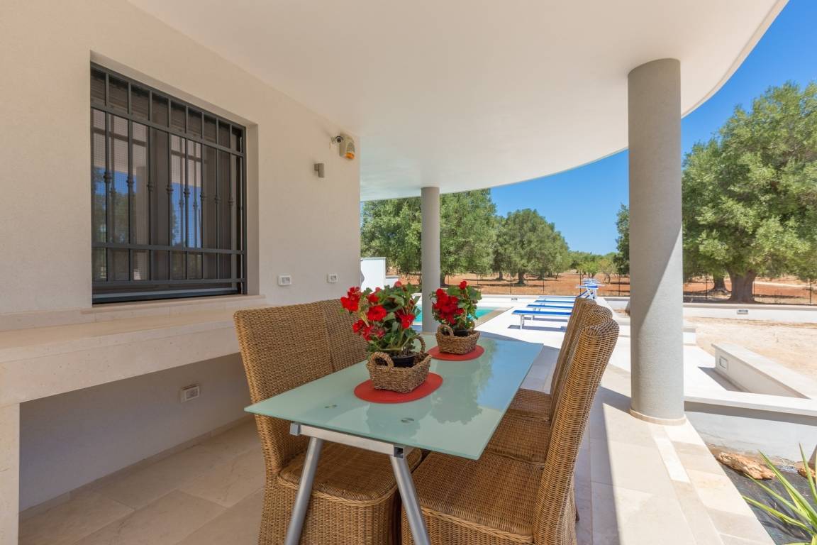 Mieten Sie eine Villa mit privatem Pool in Apulien in Serranova, 4000 m von der mit der Blauen Flagge ausgezeichneten Oase Torre Guaceto und 20 km vom Flughafen Brindisi entfernt. Genießen Sie 3 Schlafzimmer, 2 Bäder, bis zu 6 Betten. Ostuni, die weiße Stadt 15 km entfernt. 5 km vom historischen Zentrum und der Burg Dentice von Frasso di San Vito dei Normanni entfernt.