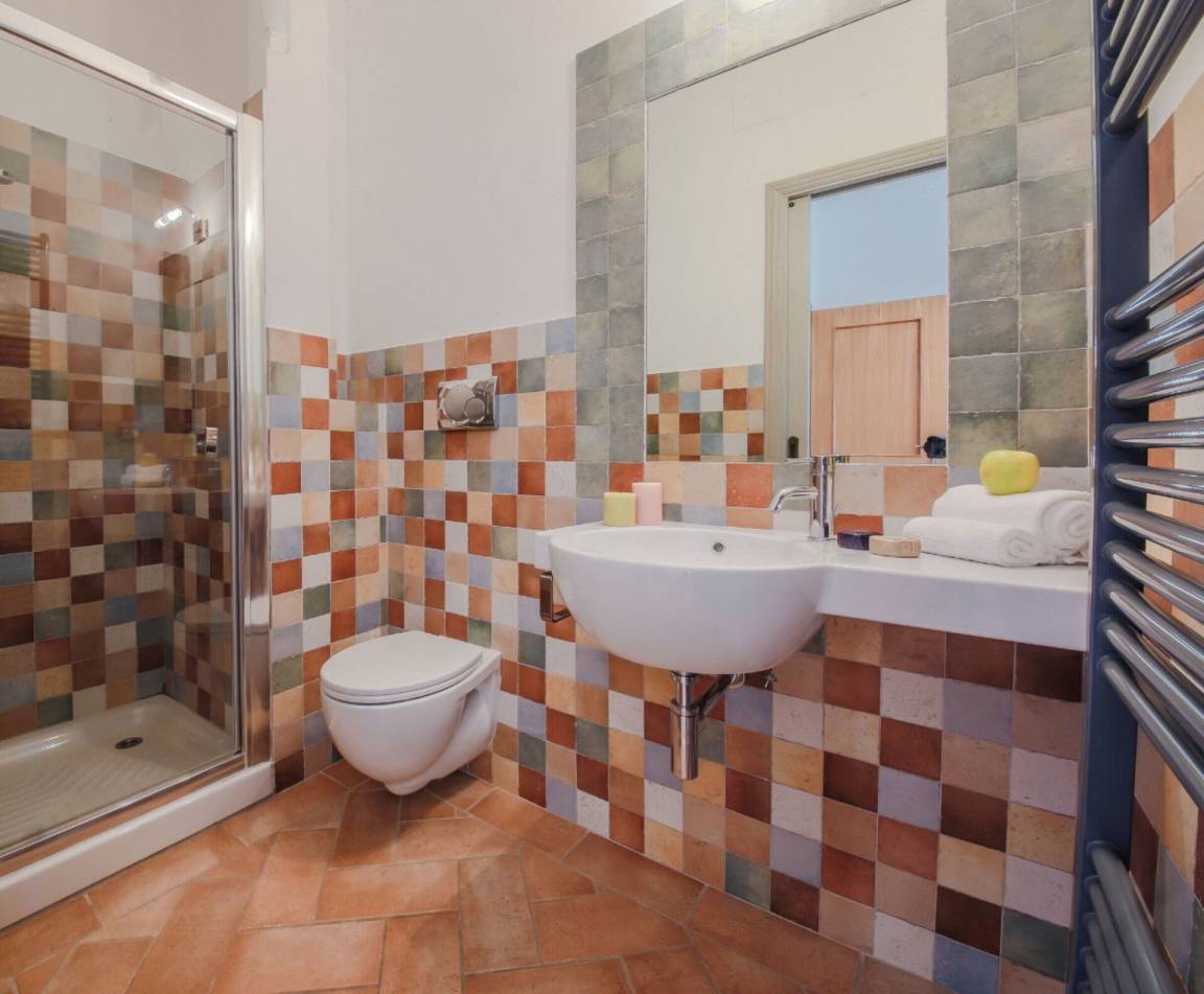 Badezimmer 5: Waschbecken, WC, Bidet, Dusche.