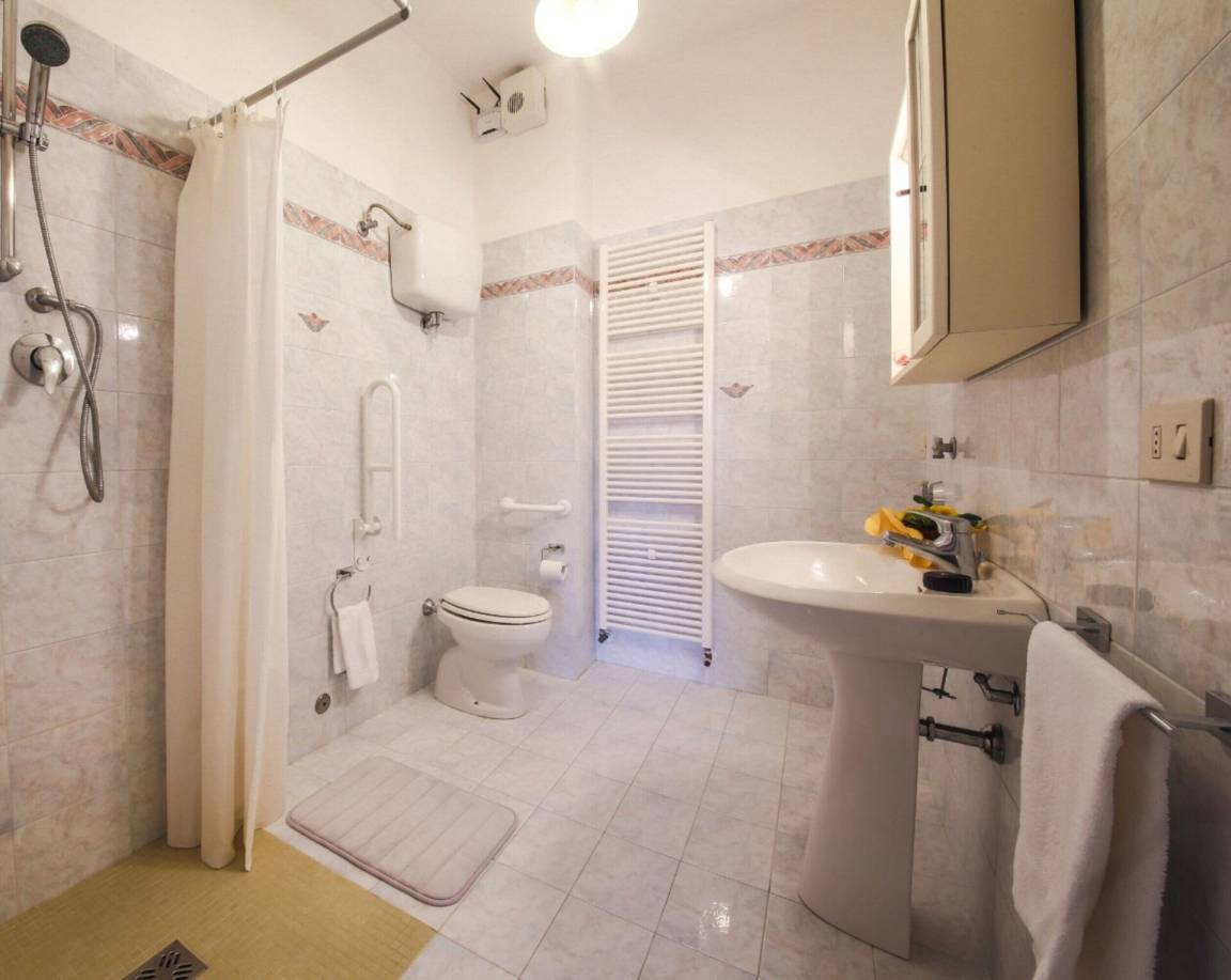 Badezimmer 6: Waschbecken, WC, Bidet, Dusche.