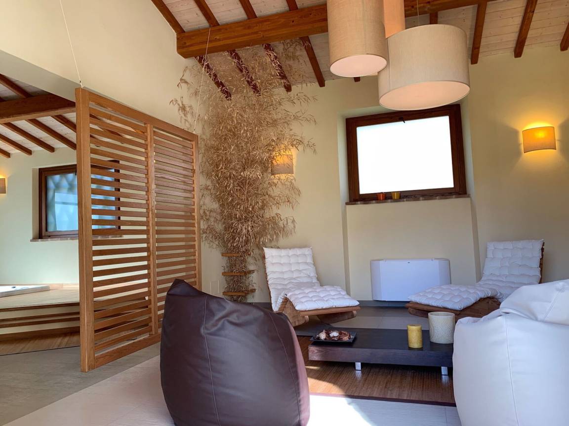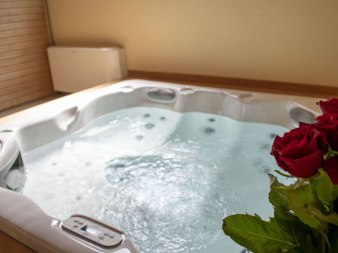 Wellnessbereich: Heißwasser-Whirlpool im Haus, Dusche, Sauna.