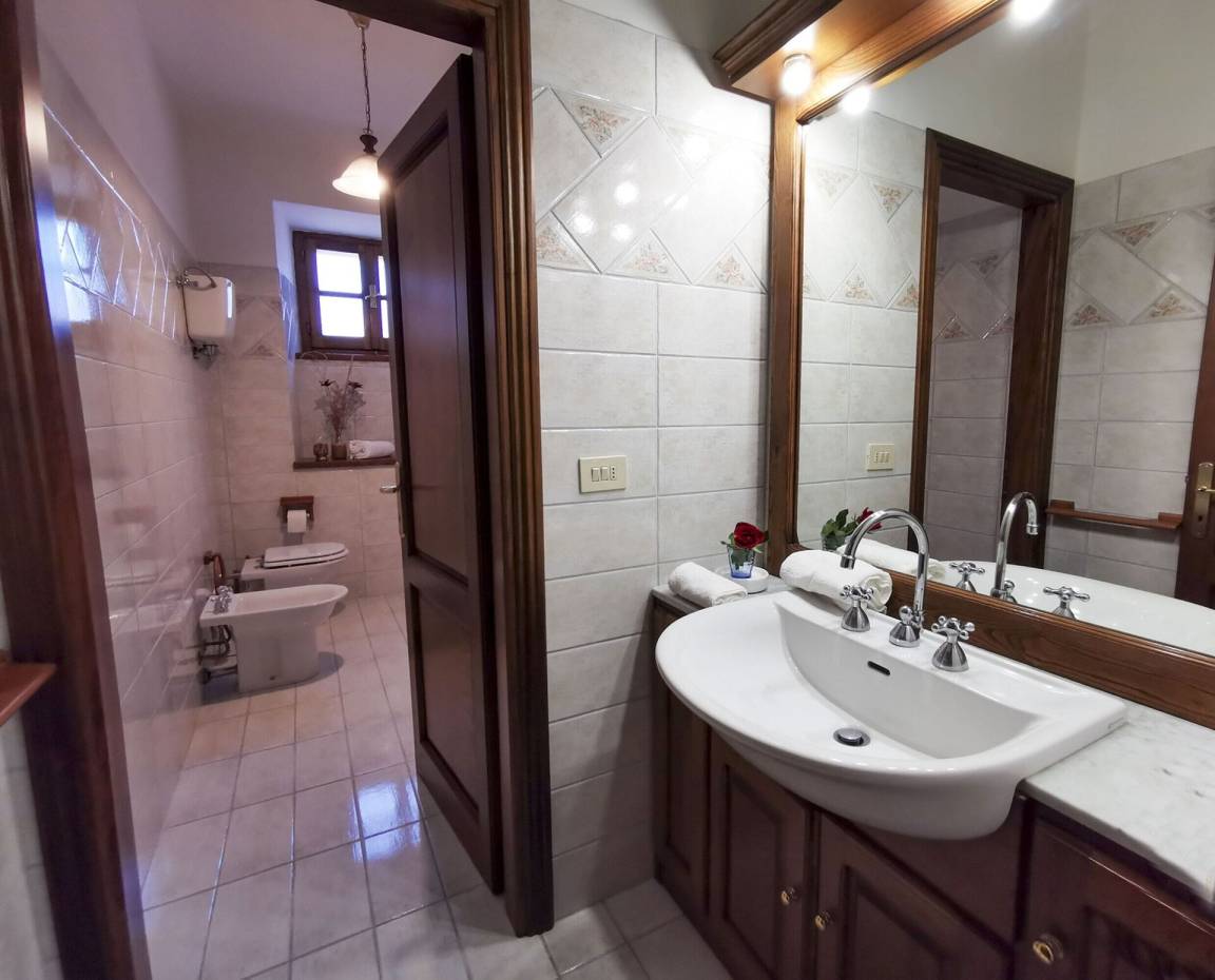 Badezimmer 4: Waschbecken, WC, Bidet, Dusche.