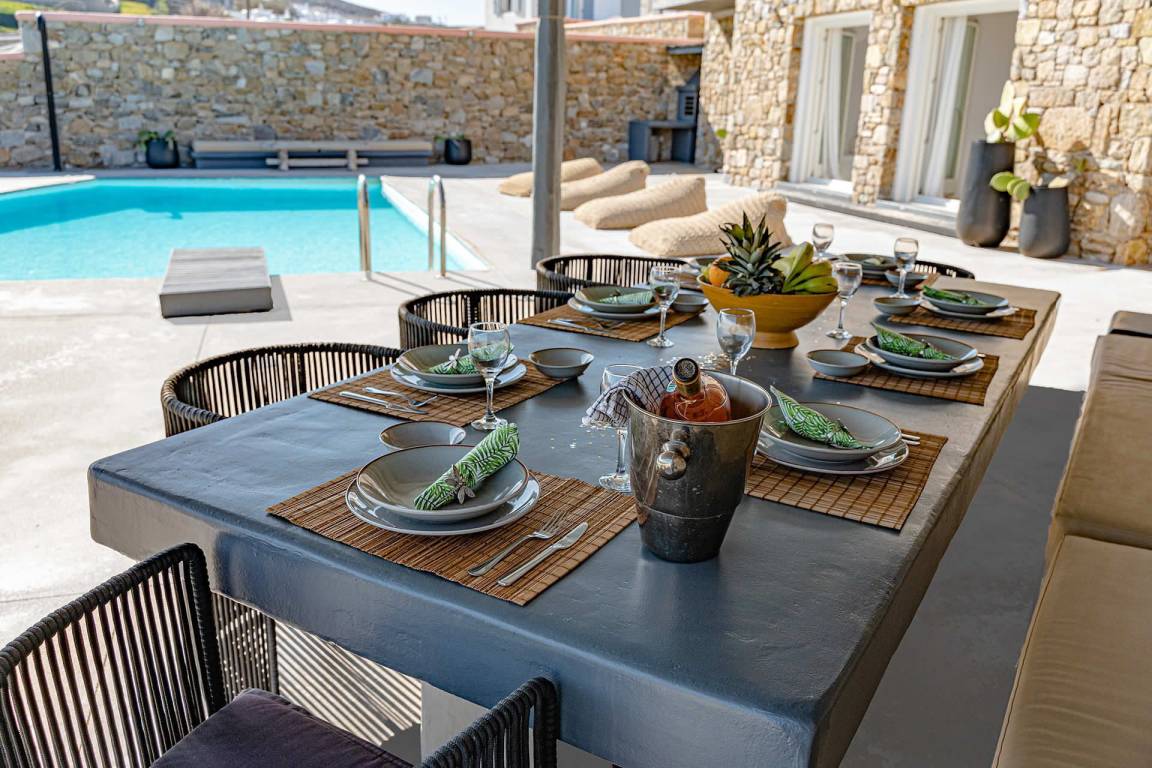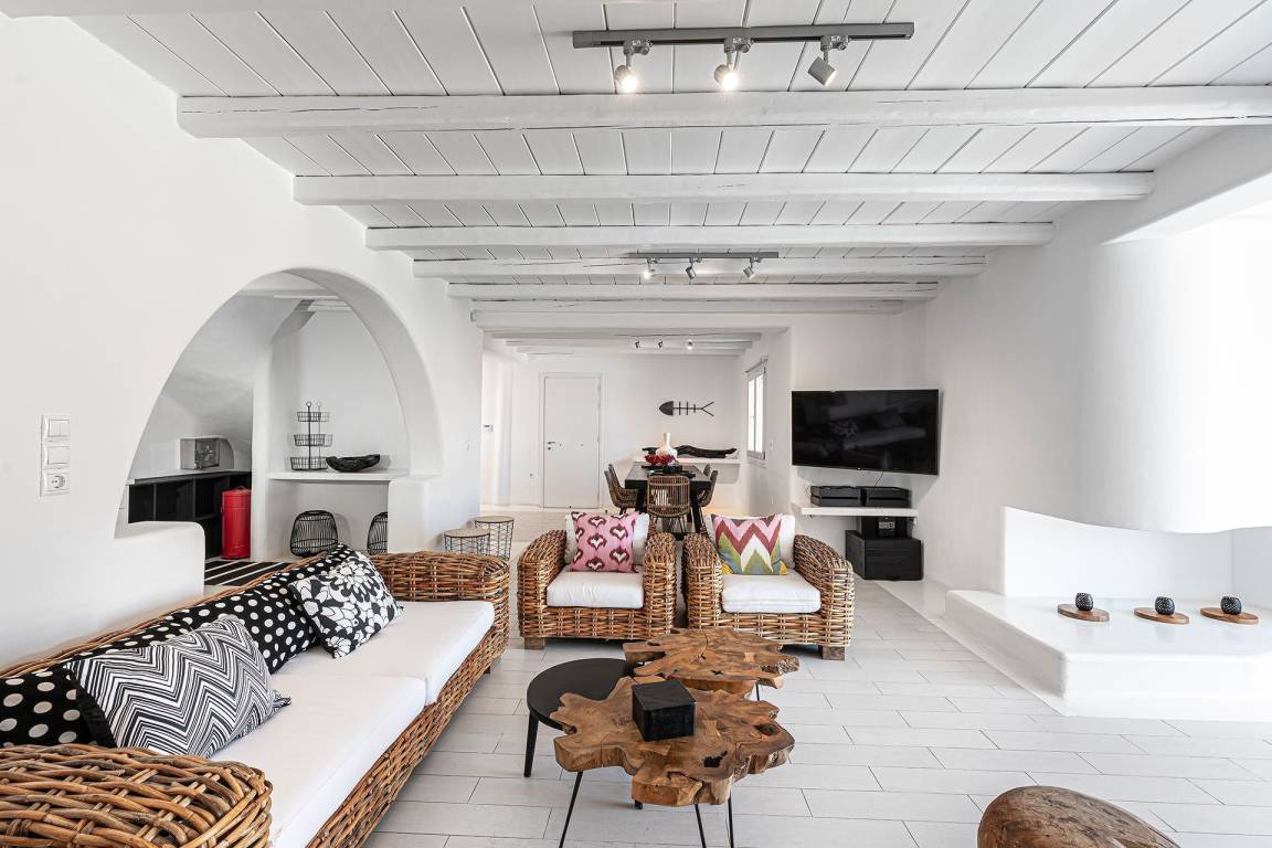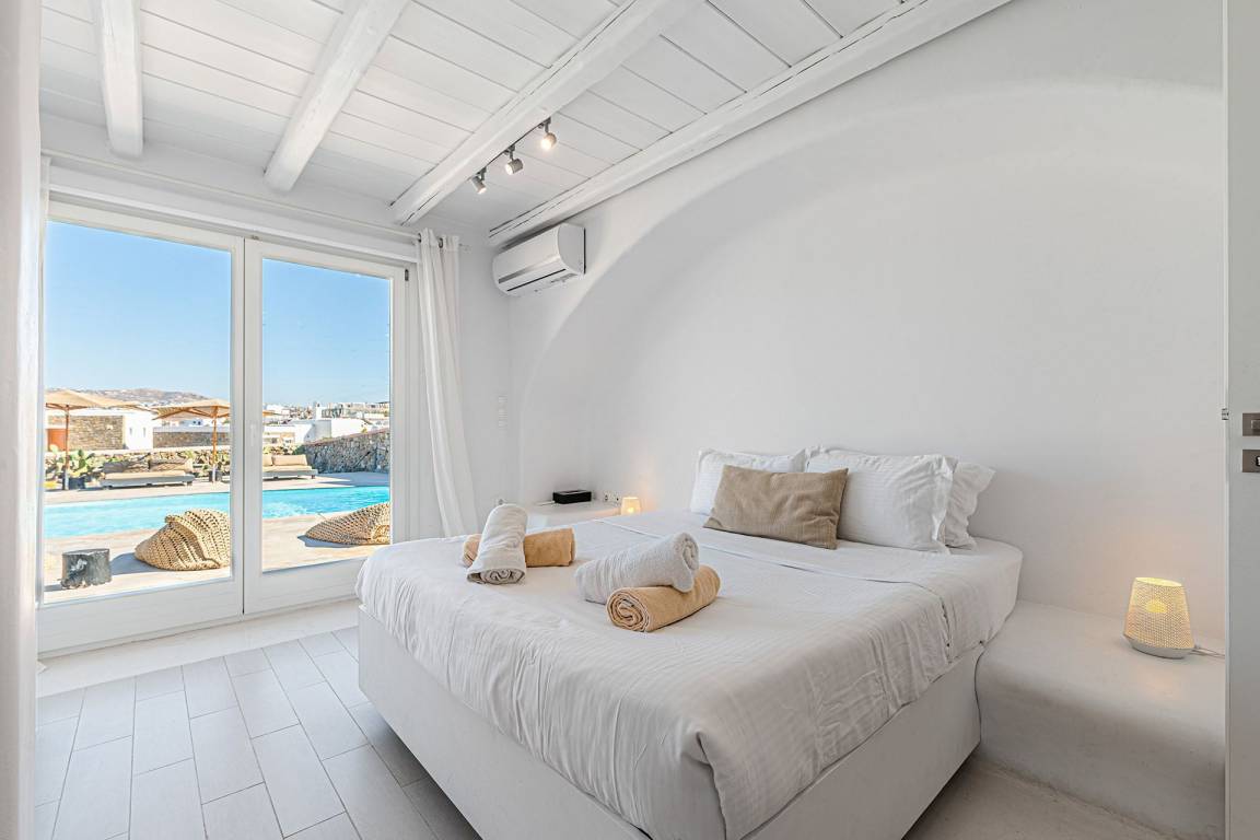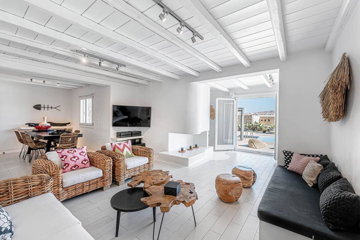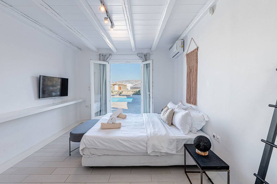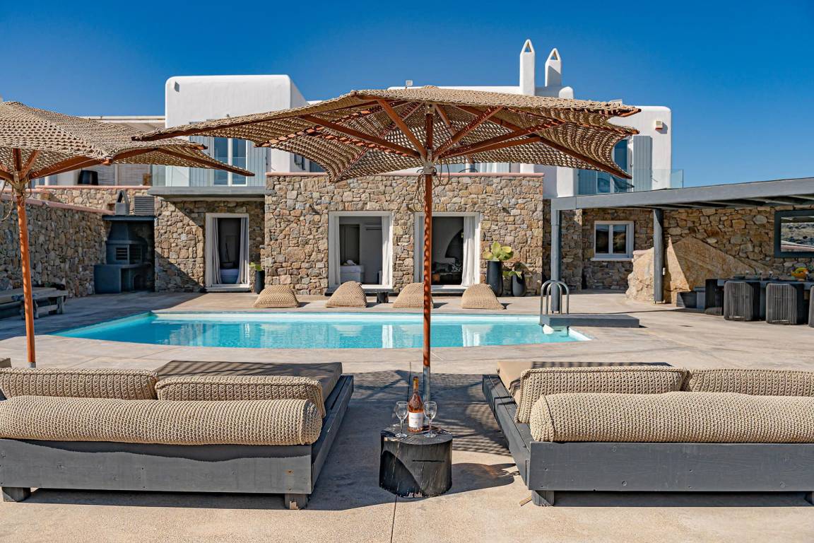 Die Villa bietet Panoramablicke auf Mykonos Town, den Hafen und die Nachbarinsel Tinos. Gäste sollten vor der Ankunft die spezifischen Check-in- und Check-out-Verfahren, Hausregeln und geltenden Richtlinien überprüfen.