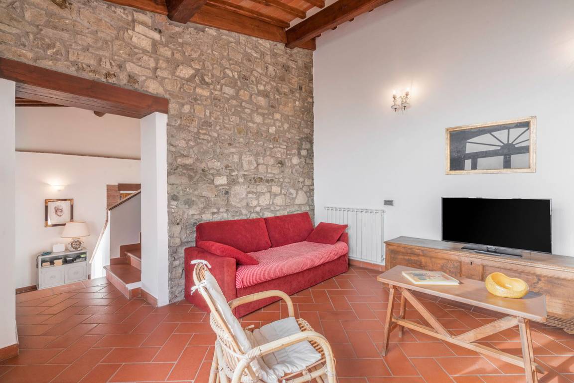 Wohnzimmer 2: Sofa (Personen: 2), WiFi Internet, Satelliten-TV, Ausgang auf den Garten.