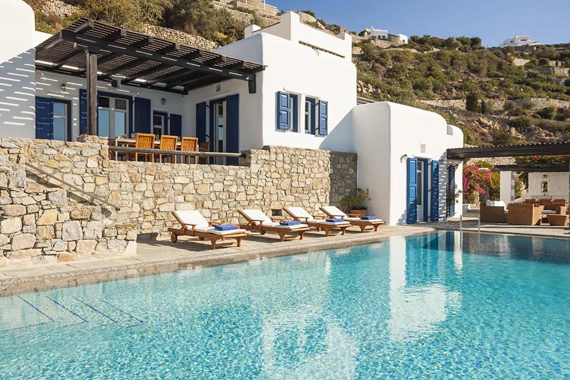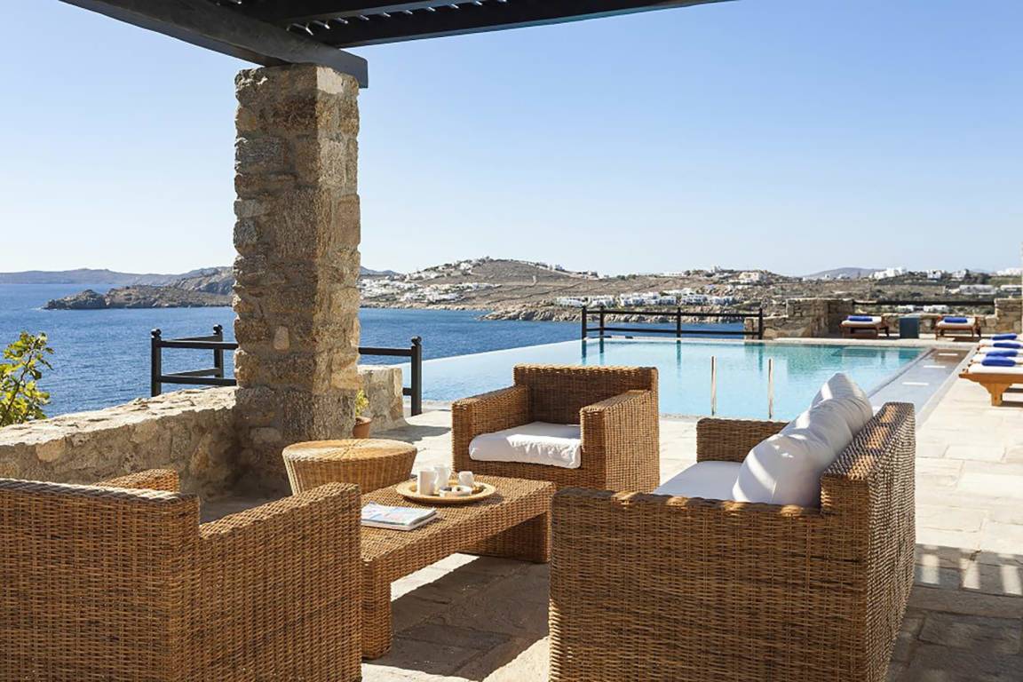 Die Villa liegt mit Blick auf die Inseln Delos und Rhenea.