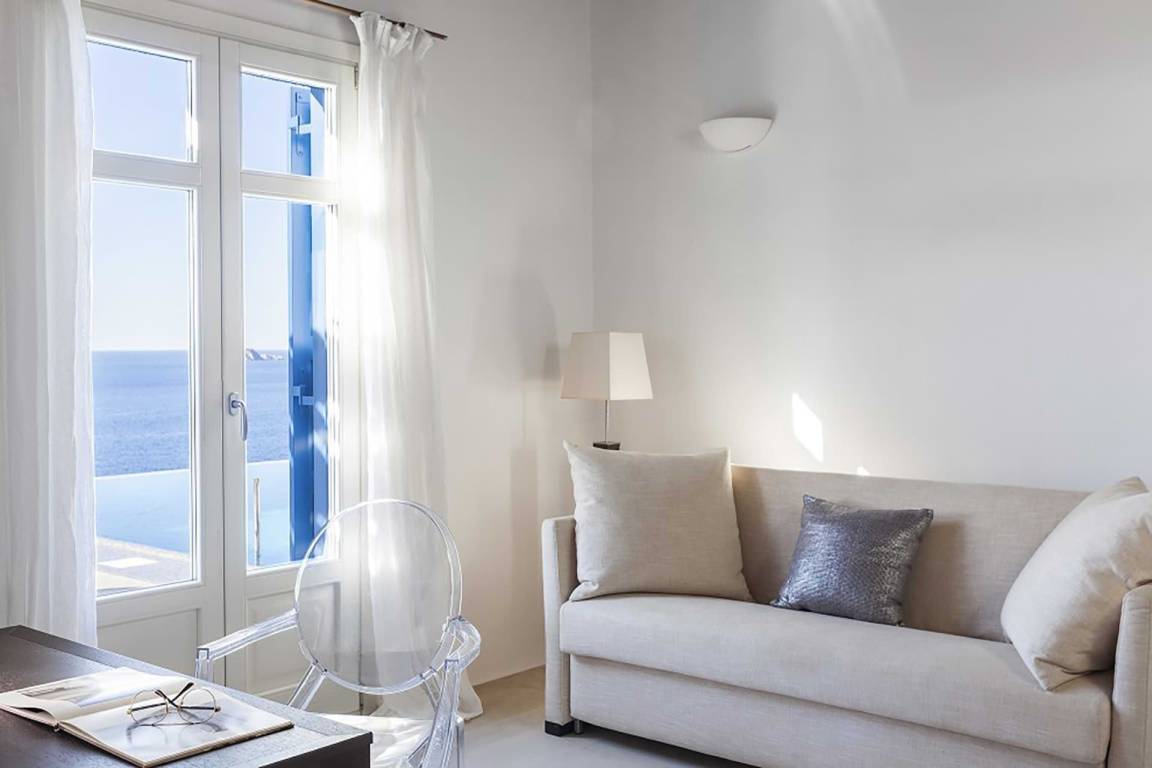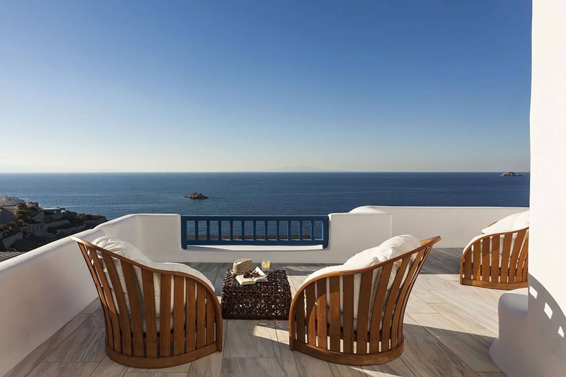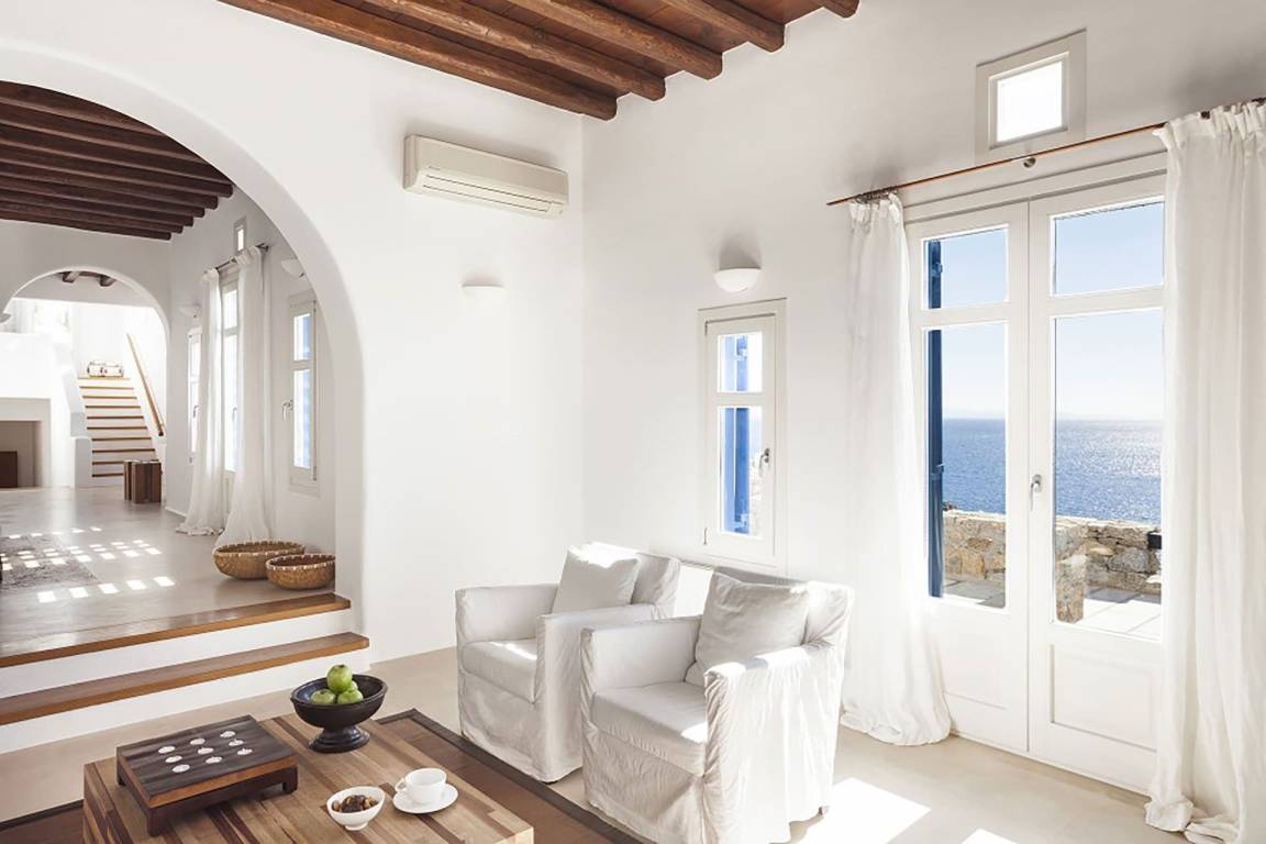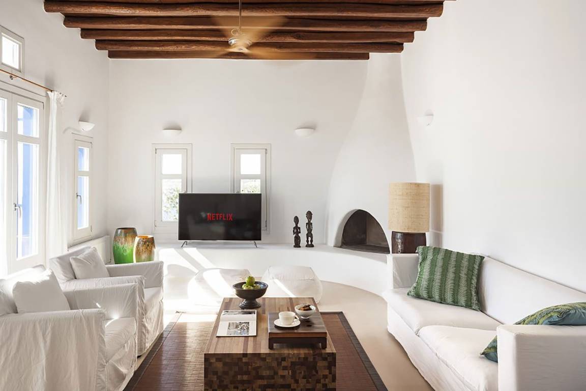 Die Villa Ariano bietet Platz für bis zu 12 Gäste auf einer Gesamtfläche von 6 Schlafzimmern und 6 Bädern. Die Räume sind großzügig geschnitten und verteilen sich so, dass jedes Zimmer Ausblicke auf die Inseln Delos und Rhenea bietet.
