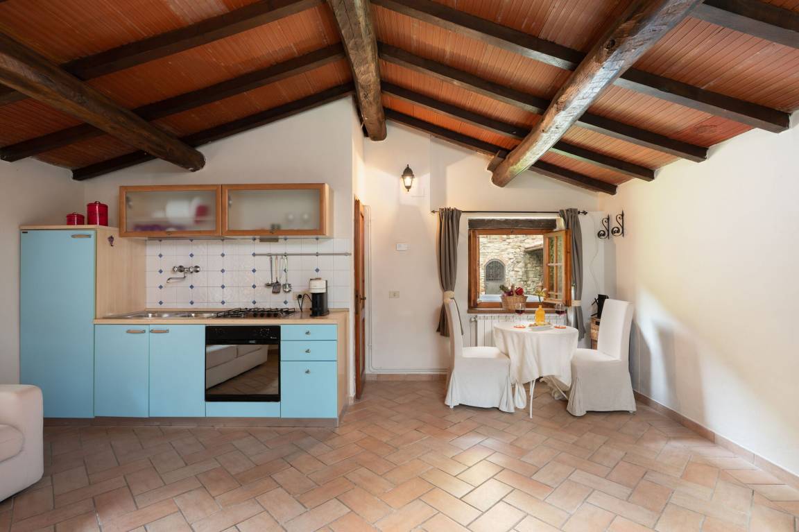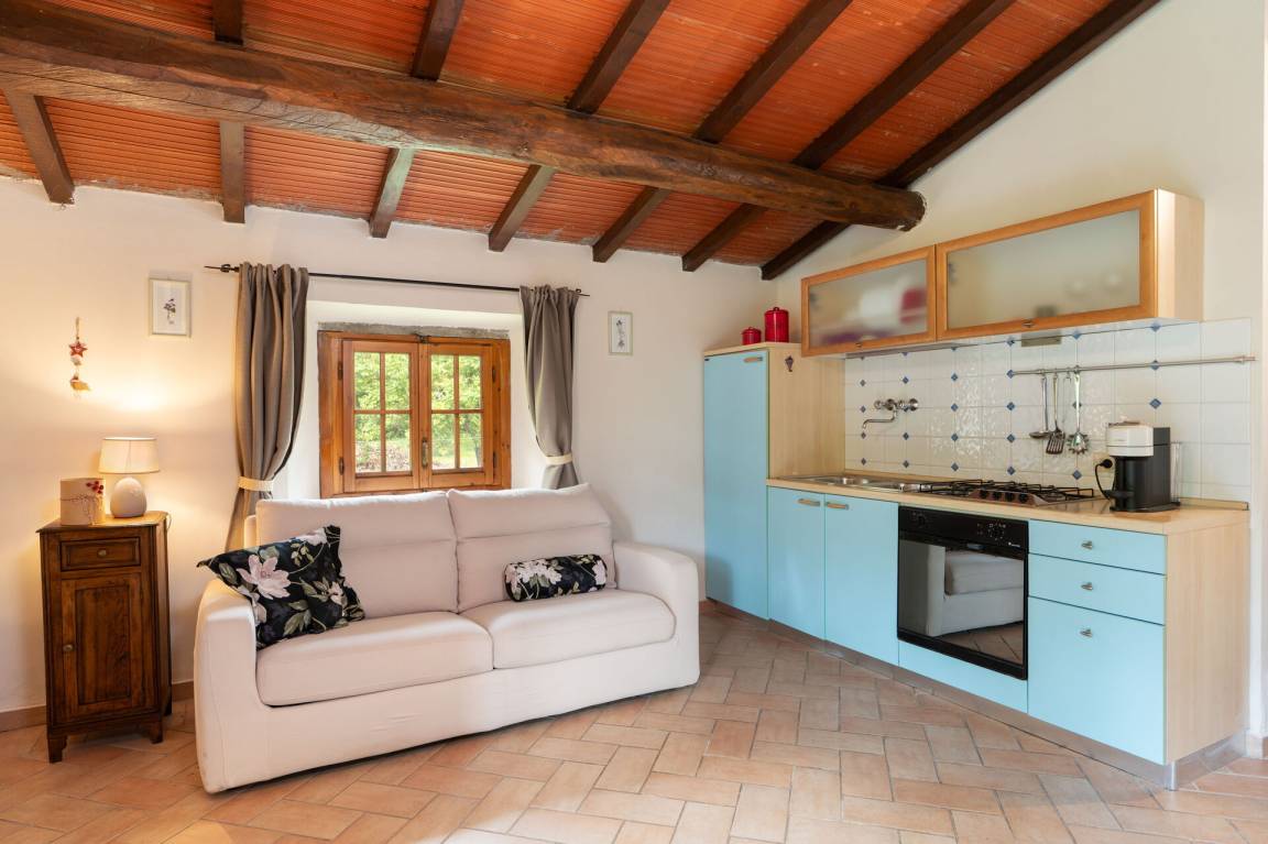 offener Raum: Esstisch (Personen: 2), Doppel-Schlafsofa, WiFi Internet, Satelliten-TV, Kühlschrank, Herd, Tiefkühler, gut ausgestattete Küche, Ofen, Italienische Kaffeemaschine, Ausgang auf den Garten.