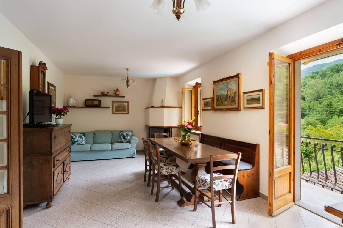 Wohnzimmer (24 m²): Sofa (Personen: 3), Kamin, Esstisch (Personen: 8), WiFi Internet, Satelliten-TV, Ausgang auf die Terrasse.