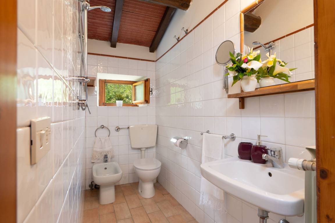 Badezimmer: Waschbecken, WC, Bidet, Dusche, WiFi Internet.
