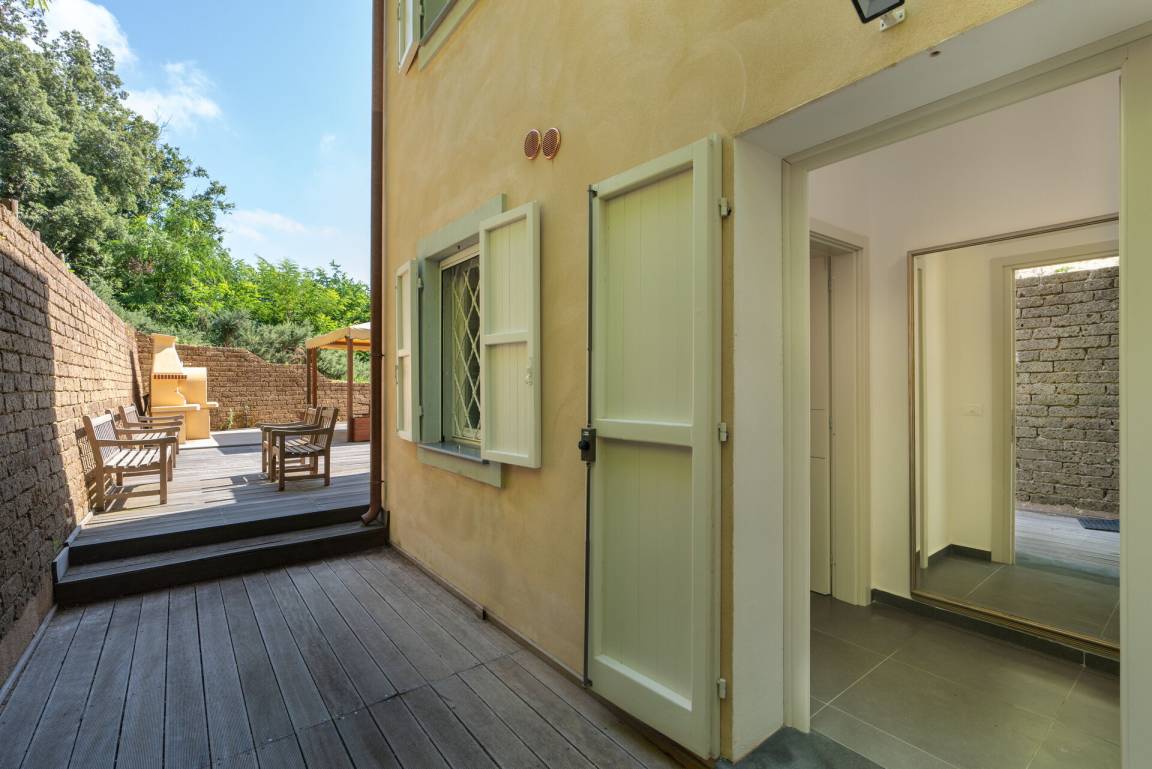 offener Raum: zwei Sessel, Kamin, Esstisch (Personen: 4), Doppel-Schlafsofa, WiFi Internet, Satelliten-TV, Ausgang auf den Garten.