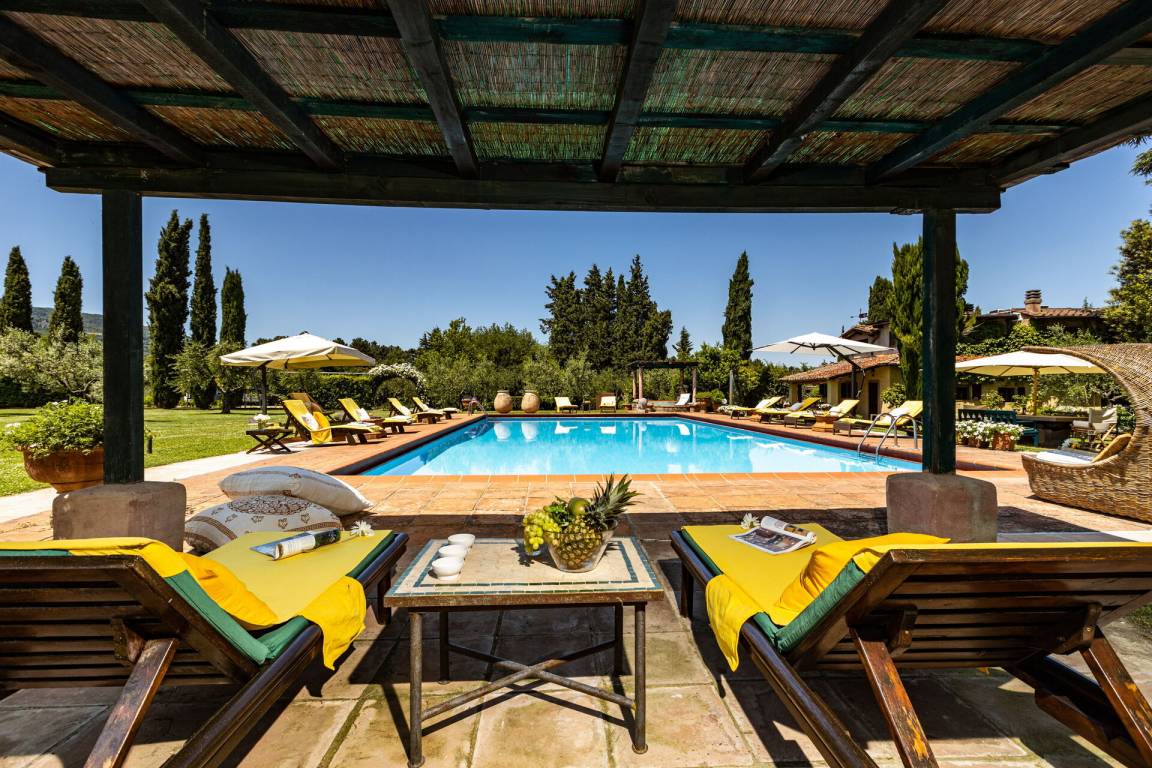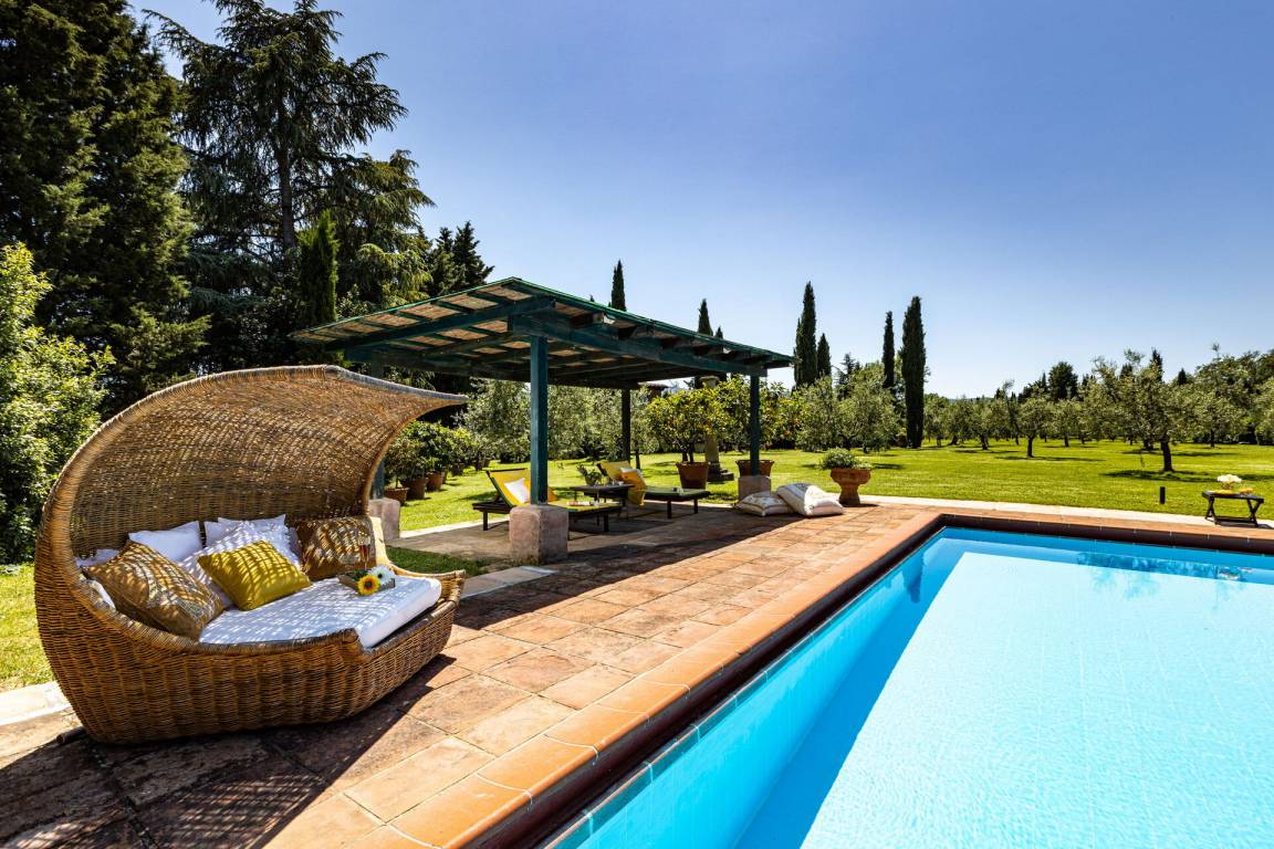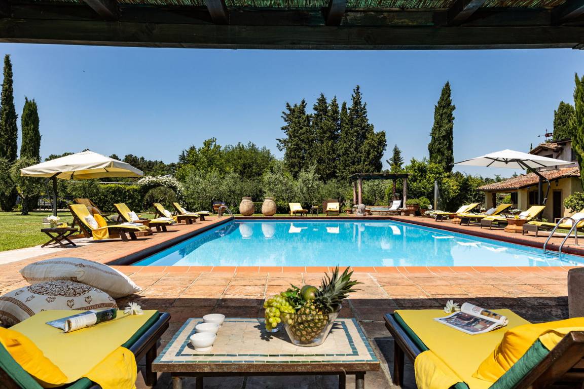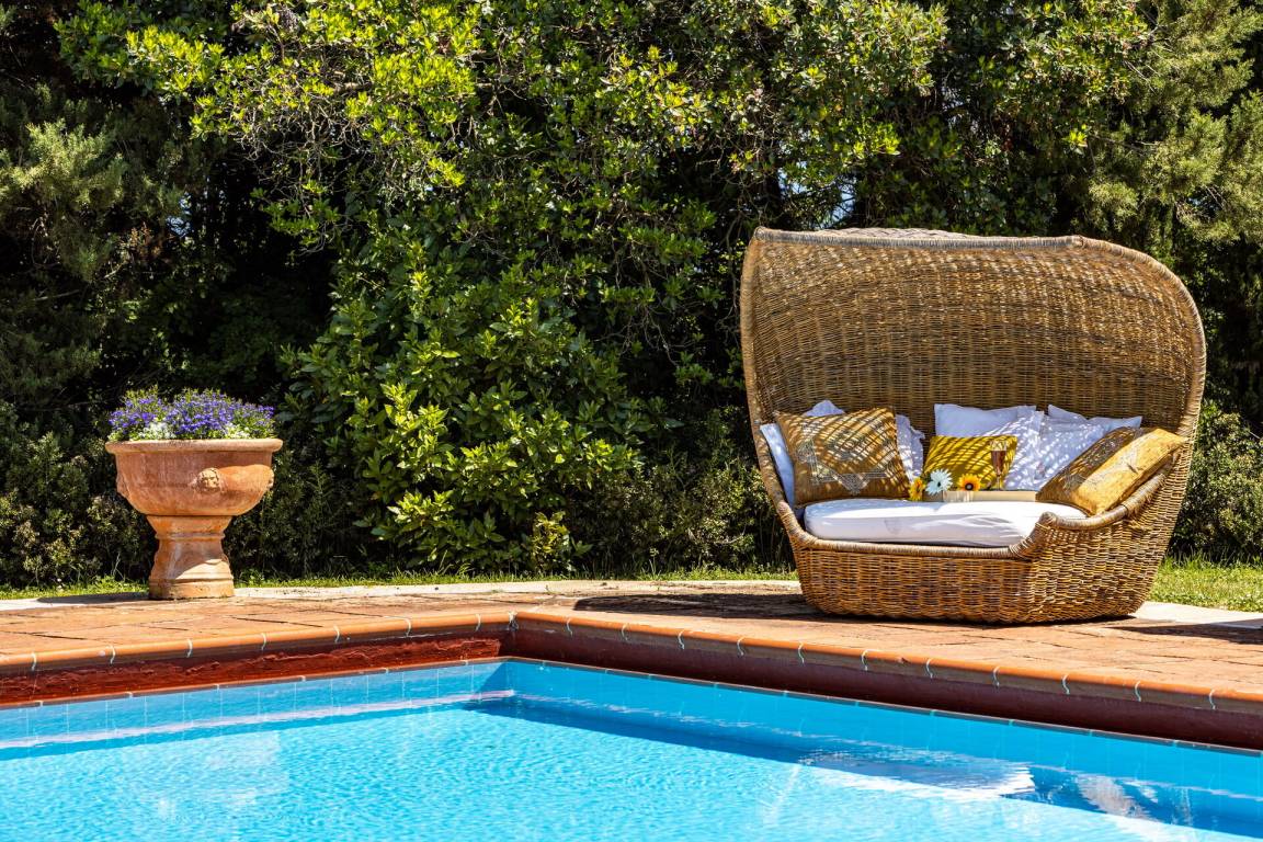 Garten (50000 m²): Schwimmbad (privat, Breite: 9m, Länge: 18m, max. Tiefe: 2.8m, min. Tiefe: 1.3m, Tiefe: 2m, Außen), Heißwasser-Whirlpool im Freien (Breite: 2m, Länge: 2m), Dusche, WiFi Internet, Grill, Kamin, Außenbereich für das Essen im Freien, Esstisch (Personen: 14), Gartenmöbel, 14 Sonnenliegen.