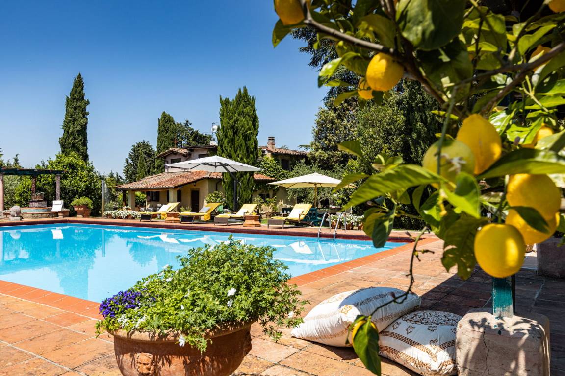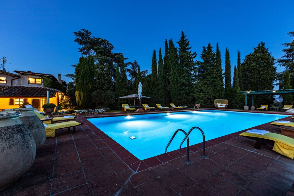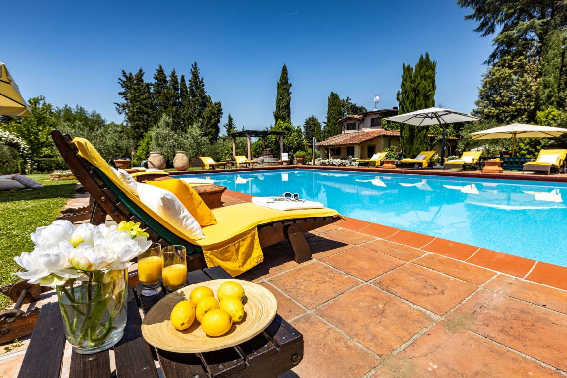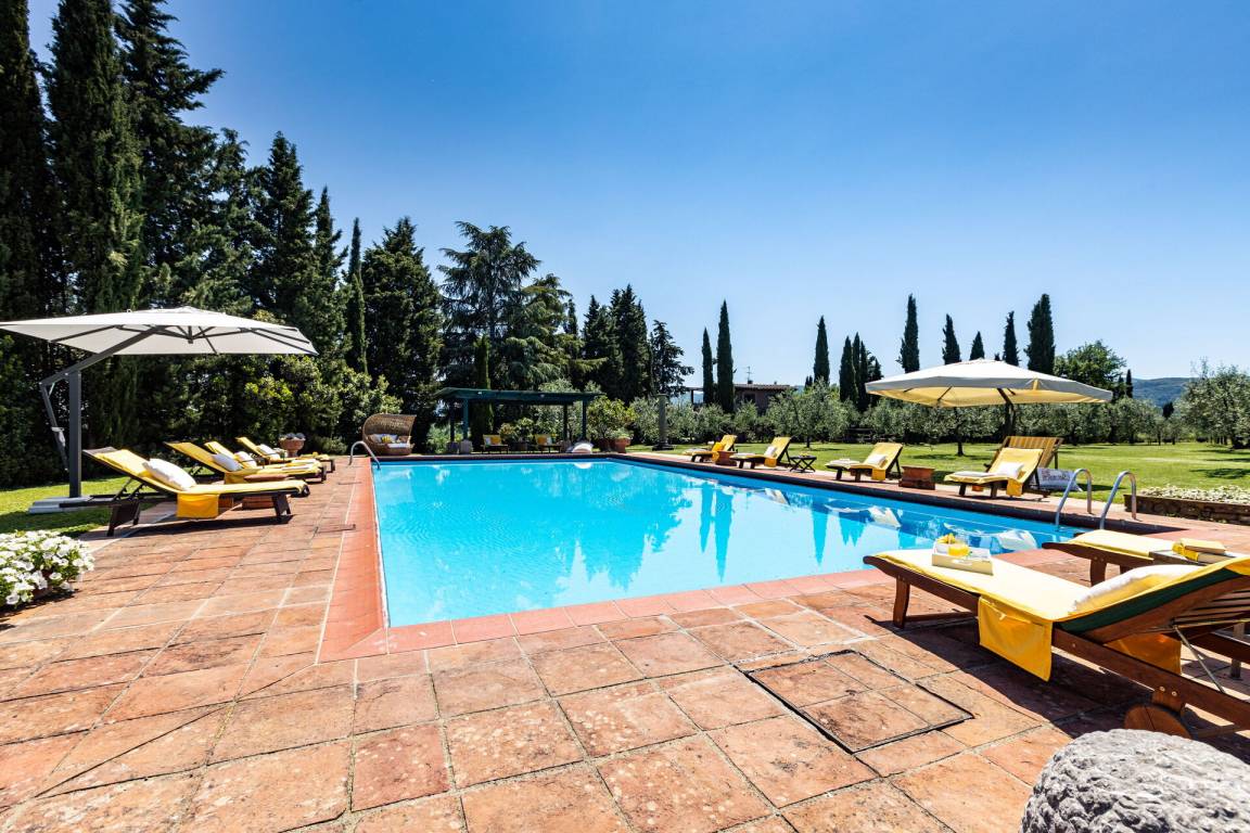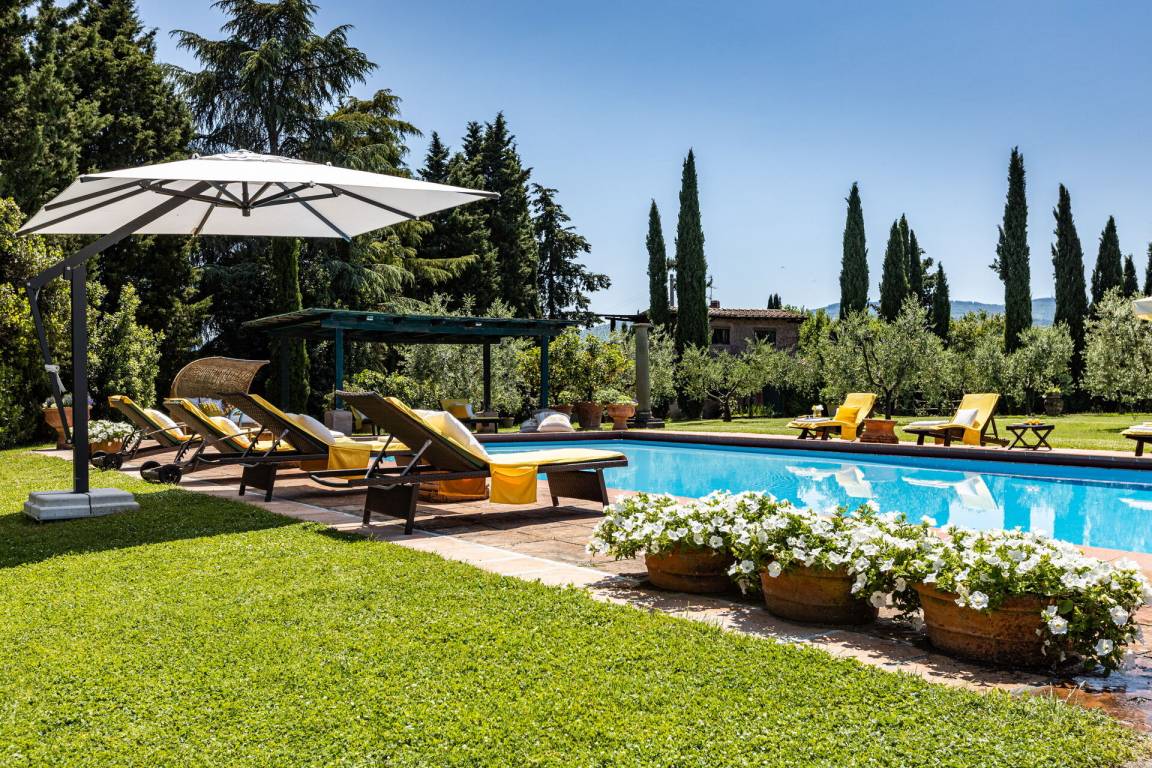 Garten (50000 m²): Schwimmbad (privat, Breite: 9m, Länge: 18m, max. Tiefe: 2.8m, min. Tiefe: 1.3m, Tiefe: 2m, Außen), Heißwasser-Whirlpool im Freien (Breite: 2m, Länge: 2m), Dusche, WiFi Internet, Grill, Kamin, Außenbereich für das Essen im Freien, Esstisch (Personen: 14), Gartenmöbel, 14 Sonnenliegen.