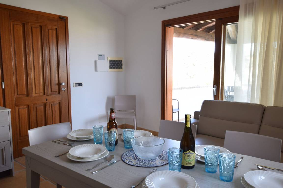 Wohnküche: gut ausgestattete Küche, Esstisch, Spülmaschine, Kühlschrank, Tiefkühler, Mikrowelle, Herd, Ofen, Toaster, Italienische Kaffeemaschine, Sofa, WiFi Internet, Klimaanlage, TV, Ausgang auf die Terrasse.