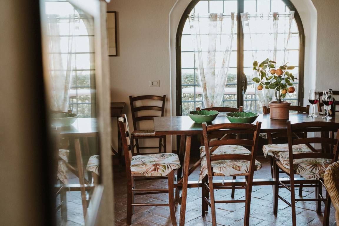 Robinia ist eine Wohnung für acht Personen im Agriturismo La Papessa in San Donato, mit separatem Eingang, bestehend aus einer großen Wohnküche mit Doppelschlafcouch, zwei Schlafzimmern mit Doppelbetten und einem Badezimmer mit Dusche im Erdgeschoss. .